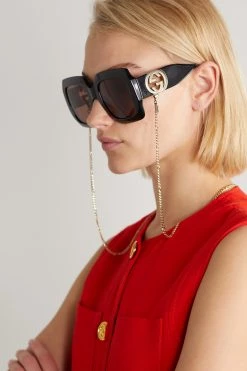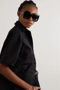 GUCCI EYEWEAR Oversized-Sonnenbrille Mit Eckigem Rahmen Aus Azetat Mit Goldfarbenen Details ,Schwarz