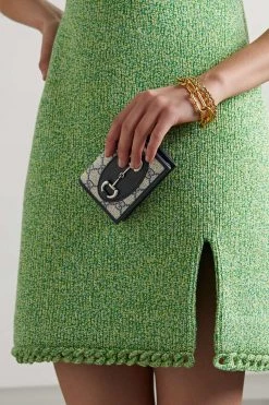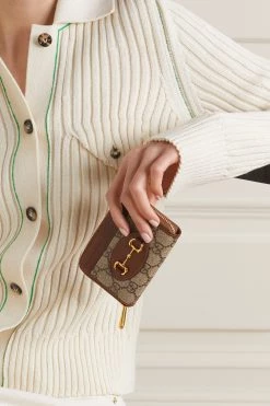 GUCCI Horsebit 1955 Kleines Portemonnaie Aus Beschichtetem Canvas Mit Print Und Lederbesätzen ,Braun