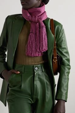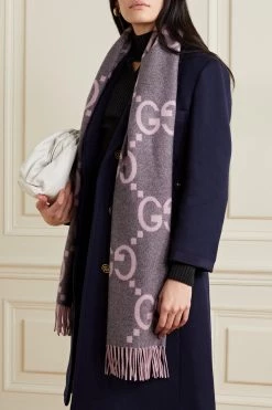 GUCCI + The North Face Schal Aus Wolle In Zopfstrick Mit Applikation Und Fransen ,Schwarz