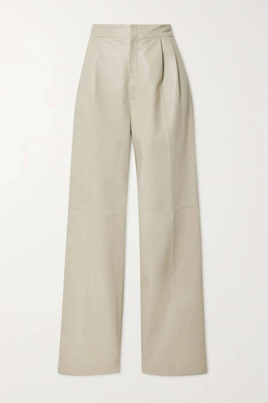 GUCCI Aria Hose Mit Weitem Bein Aus Leder Mit Falten ,Grau