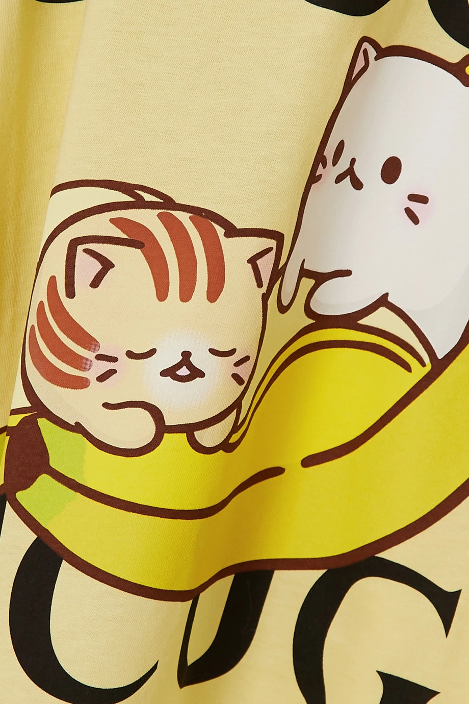 In Zusammenarbeit mit der japanischen Zeichentrickserie Bananya hat Gucci eine verspielte Capsule-Kollektion kreiert, die Ihnen mit Sicherheit ein Lächeln ins Gesicht zaubern wird. Dieses Oversized-T-Shirt ist mit zwei süßen Kätzchen bedruckt, die in Bananenschalen hausen.