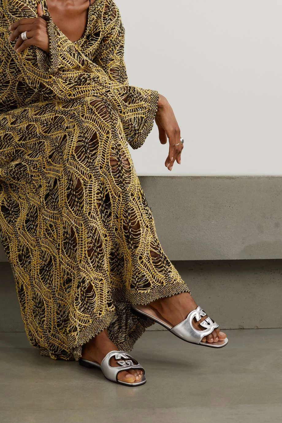 Diese Pantoletten aus der „Beloved“ Reihe von Gucci zeigen sich mit einem Cut-out in Form des „GG“-Logos, das die verschlungenen Initialen des Markengründers Guccio Gucci nachbildet. Das Paar wurde in Italien aus geschmeidigem Leder gefertigt und mit einem flachen Absatz versehen. Da die silberfarbene Ausführung zu ebenso vielen Outfits passt wie weiße oder schwarze Schuhe, können Sie das Modell zu all Ihren Sommerkleidern tragen.