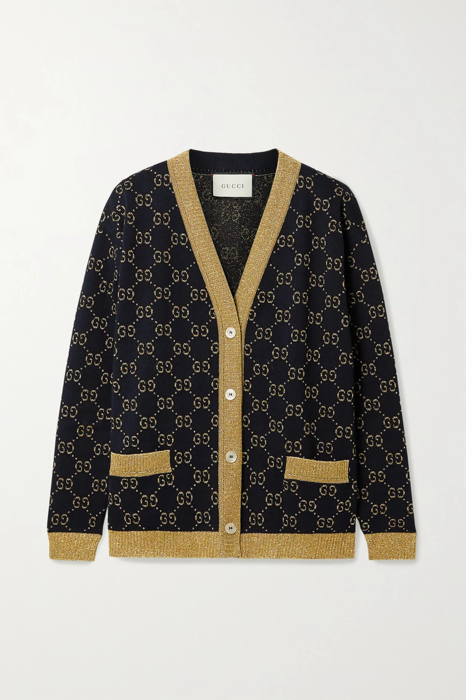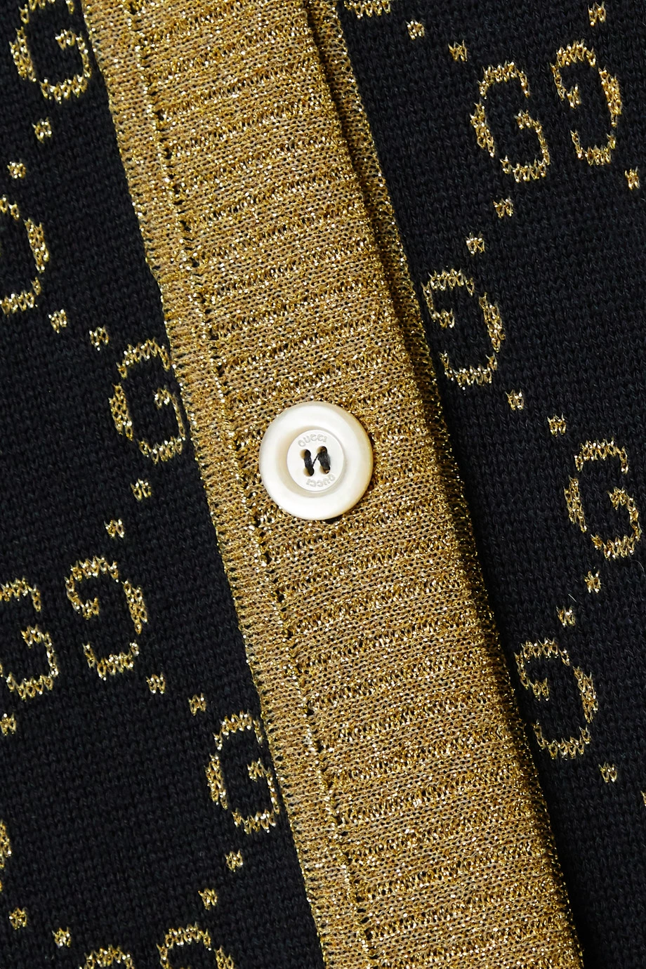 Dieser Cardigan von Gucci zeigt sich über und über mit dem „GG“-Logo – das wohl bekannteste Emblem des Hauses. Das leicht lockere Modell aus Jacquard-Strick wurde in Italien aus einer weichen Baumwollmischung gefertigt und hat goldfarbene Abschlüsse sowie Knöpfe aus Perlmutt – schließen Sie diese, um einen tiefen Ausschnitt zu kreieren oder lassen Sie sie offen und ziehen Sie das passende Oberteil darunter.