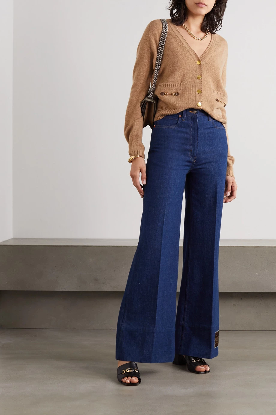 Dieser Cardigan von Gucci ist mit dem ikonischen „Horsebit“-Detail verziert, das sich an vielen Klassikern aus dem Archiv des Hauses zeigt. Das Modell besteht aus weichem Kaschmir in vielseitigem Camel und sieht über einem bedruckten T-Shirt oder unter einem Oversized-Trenchcoat besonders schick aus.