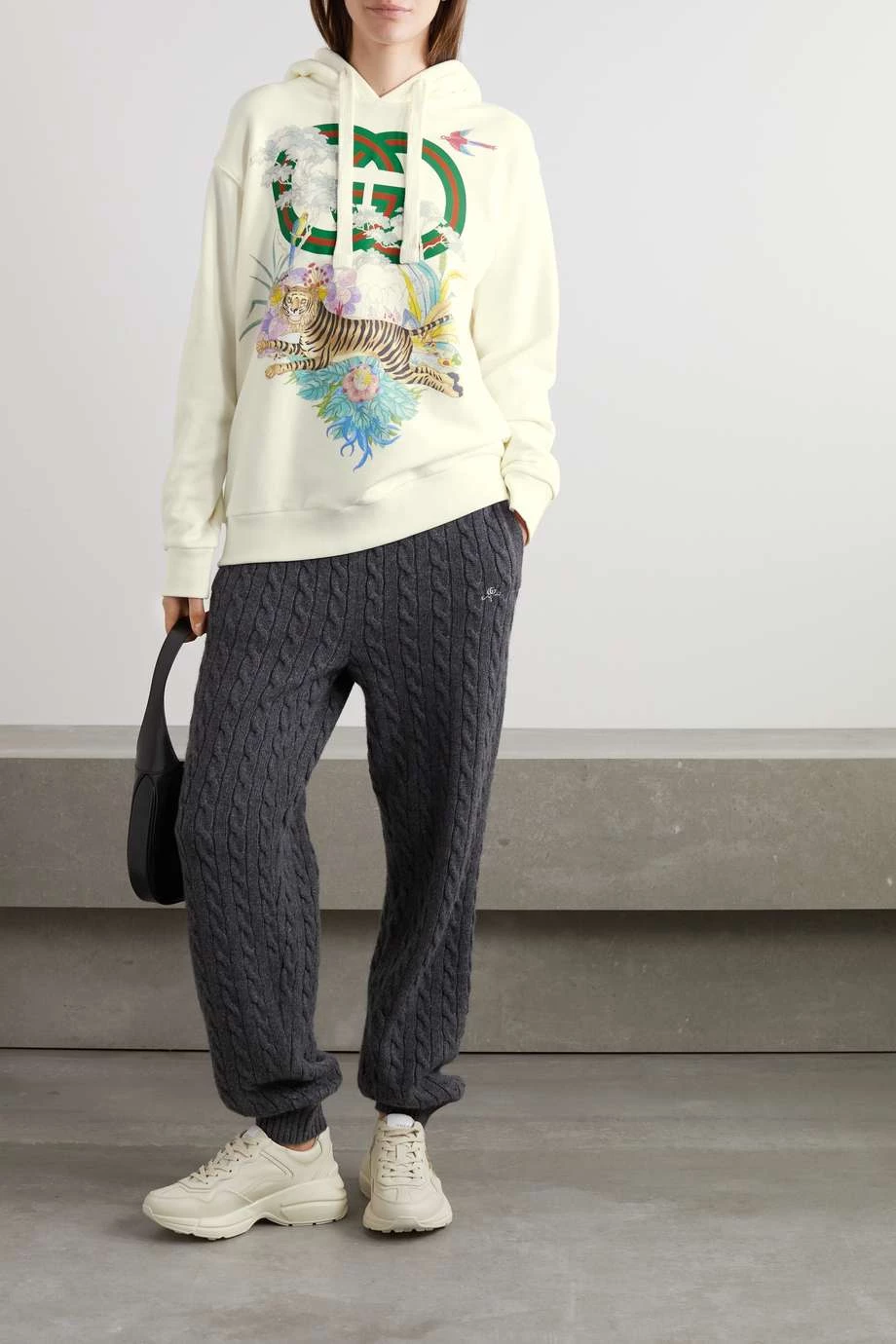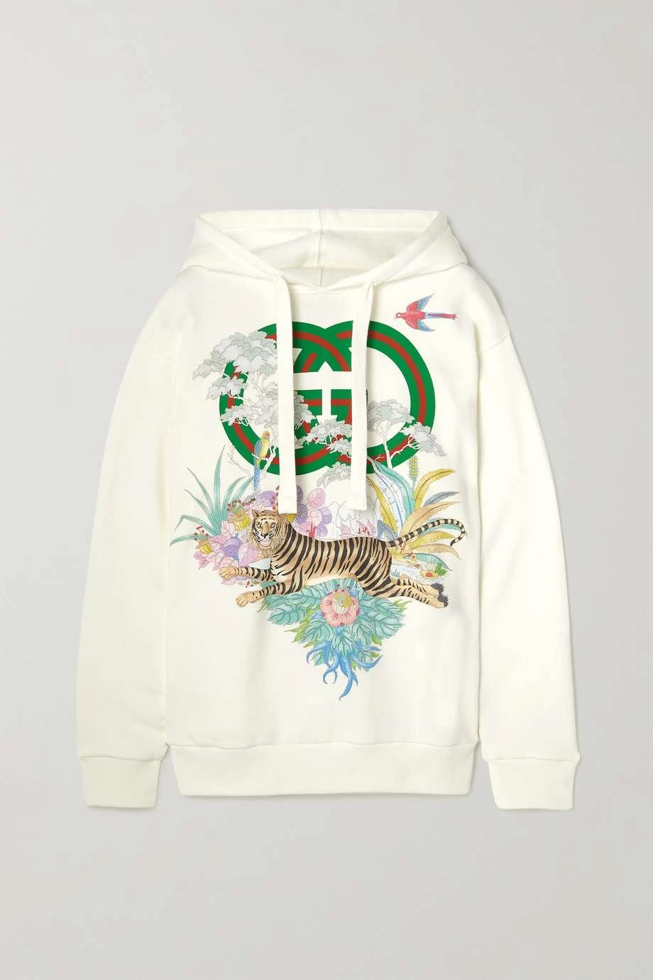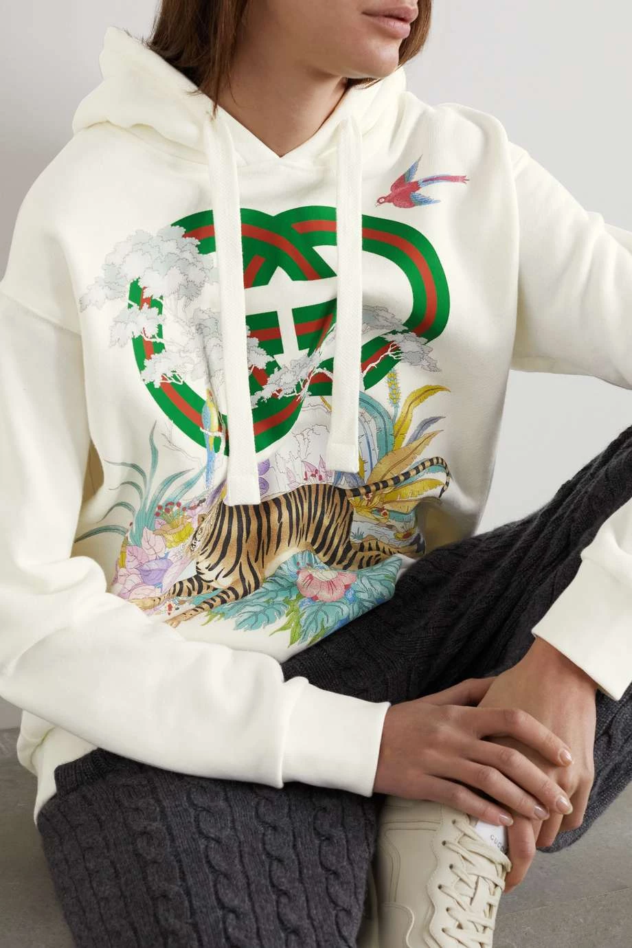 Gucci feiert das Chinesische Neujahr mit einer Capsule-Kollektion, zu der auch dieser Hoodie gehört: Neben dem „GG“-Logo und Blumen wurde er mit einem Drachen – das Symboltier für 2022 – bedruckt. Das leicht lockere Modell besteht aus Baumwoll-Jersey und hat überschnittene Schultern. Wir empfehlen eine Jeans oder Jogginghose dazu.