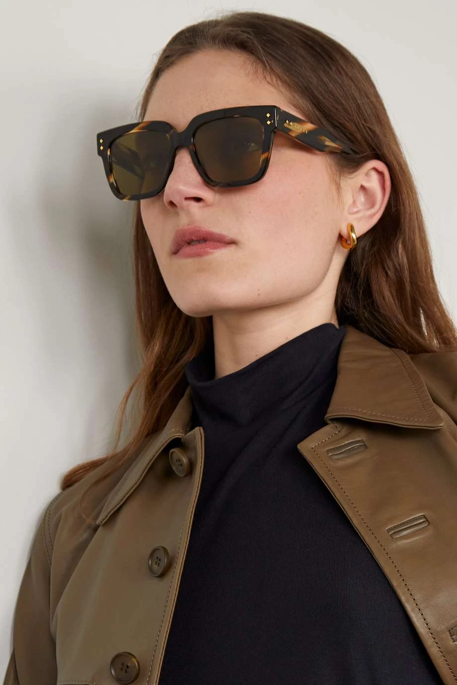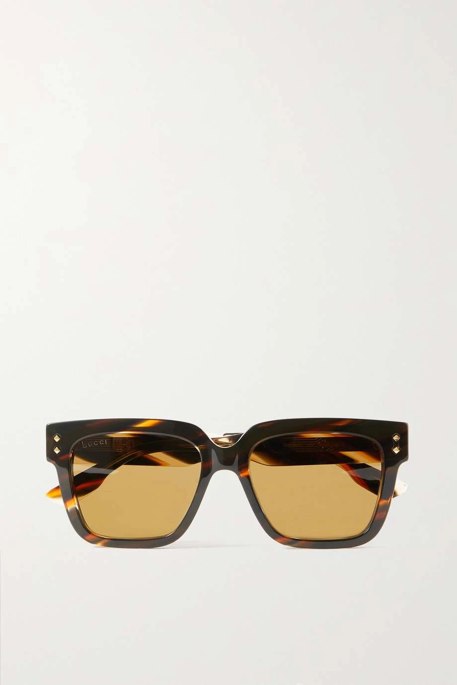 Diese Sonnenbrille mit eckigem Rahmen von Gucci Eyewear wurde aus glänzendem Azetat in Hornoptik gefertigt und mit goldfarbenen Metalldetails gestaltet – diese sind an der Schläfe und den Innenseiten jedes Bügels zu entdecken. Das Modell ist mit braunen Gläsern ausgestattet und mit dem Logo des Hauses bedruckt.