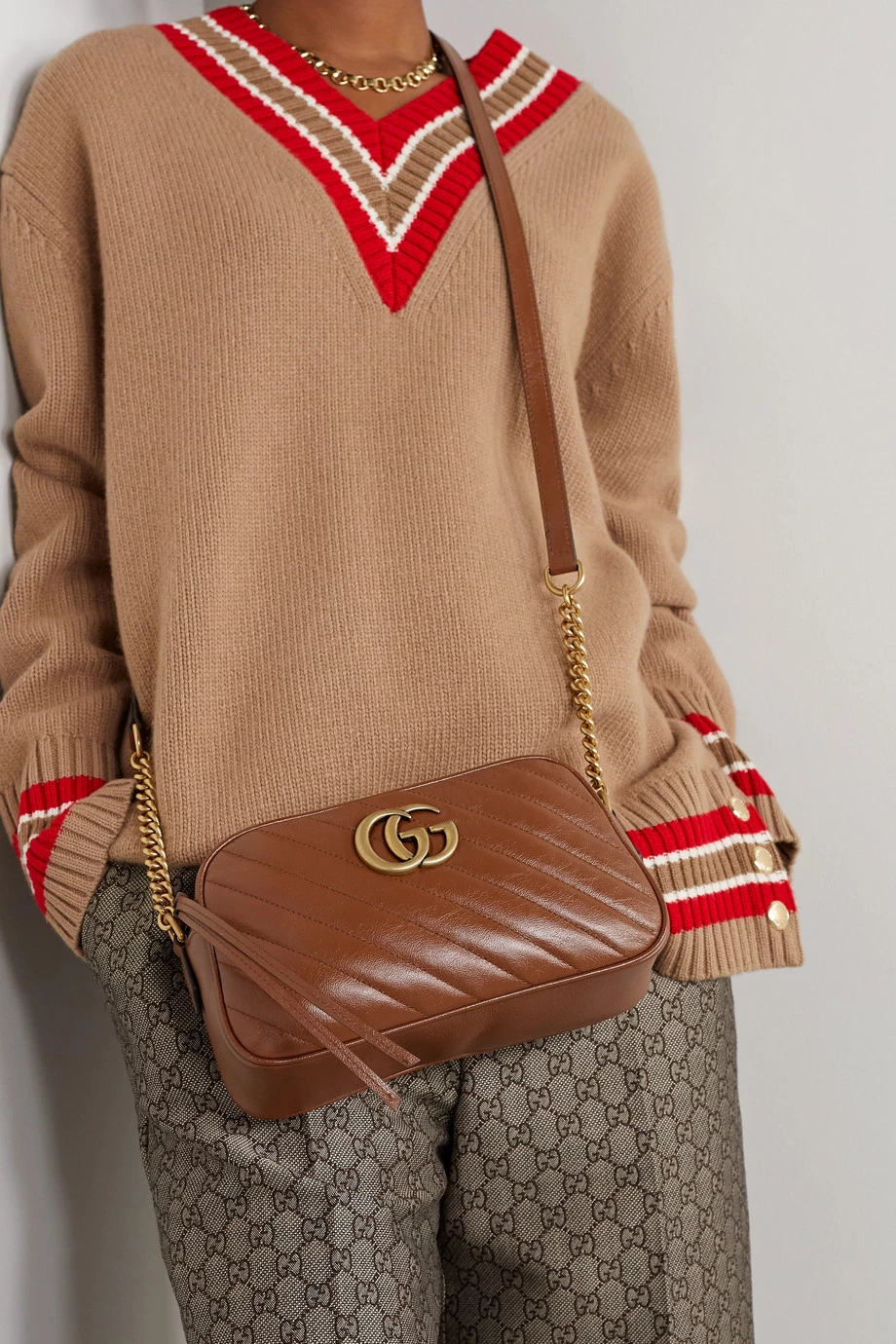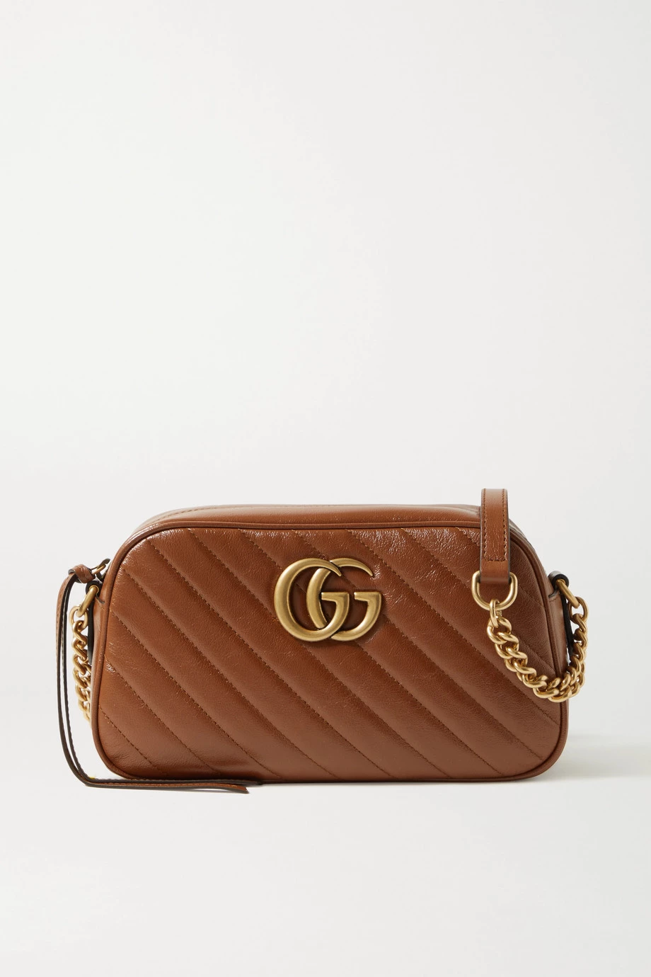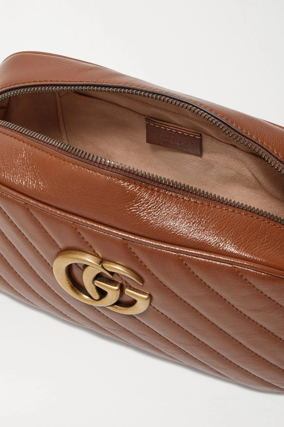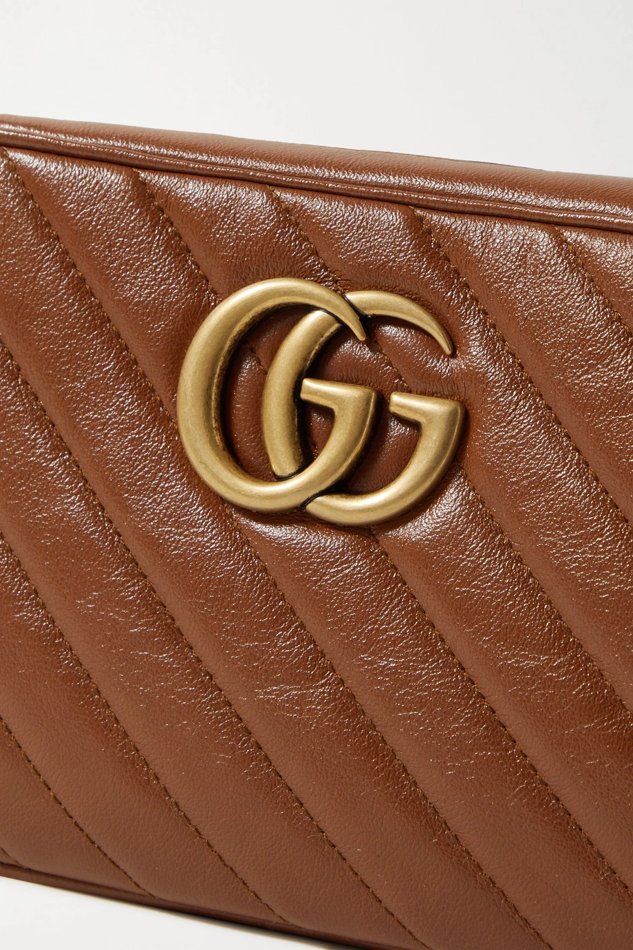 GUCCI GG Marmont Camera Kleine Schultertasche Aus Gestepptem Leder ,Braun