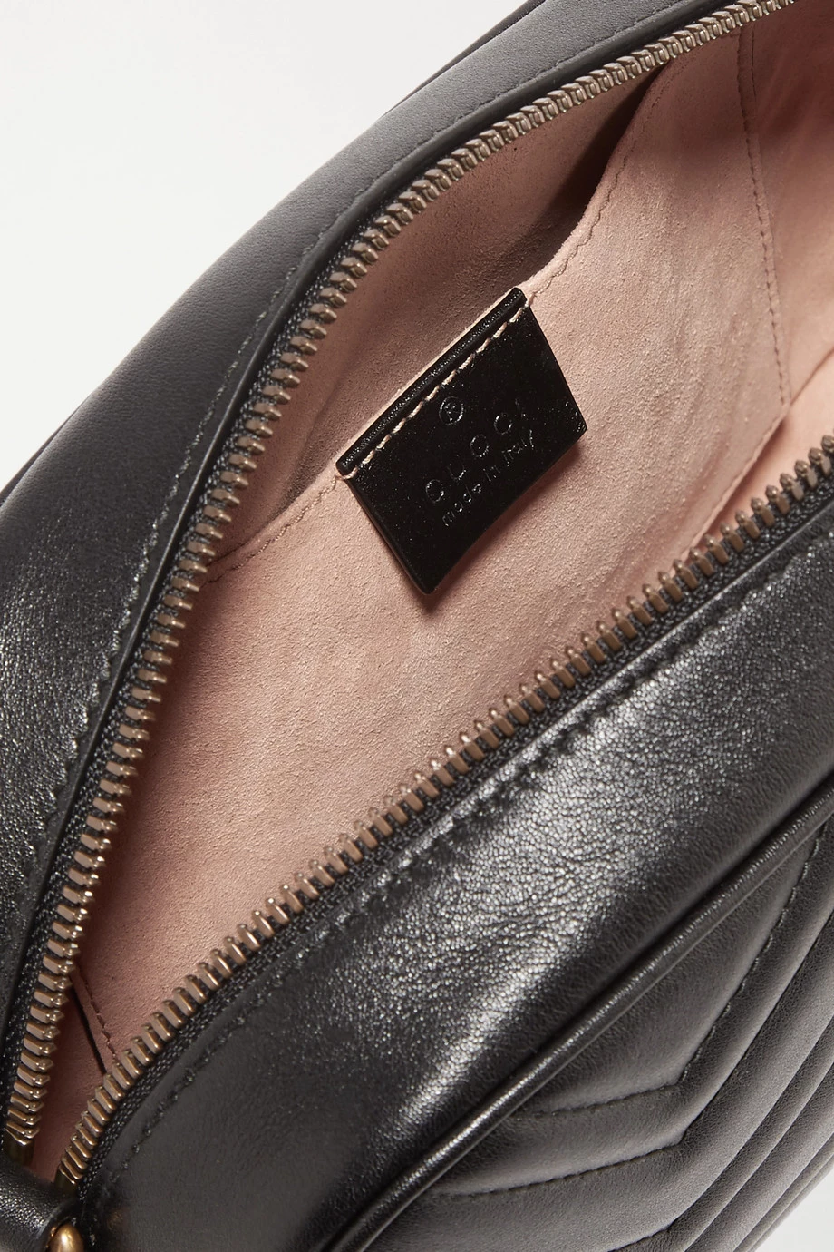 Als Inspiration für die ineinandergreifenden Buchstaben des ikonischen „GG“-Details von Gucci diente die Schnalle eines 70er-Jahre-Gürtels aus dem Fundus des Hauses. Das charakteristische Zierelement befindet sich auch an dieser gesteppten Ledertasche, die in ihrem mit Veloursleder gefütterten Inneren genügend Platz für Essentials wie Puderdose, Portemonnaie und Schlüssel bietet. Legen Sie den Kettenträger einfach über Ihre Schulter.