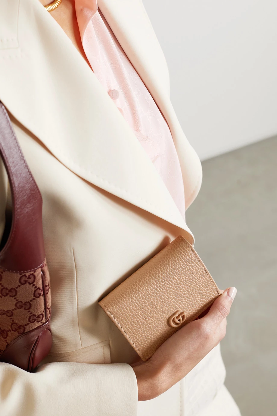 Das „Marmont“ Portemonnaie von Gucci besteht aus robustem strukturiertem Leder, das sich für die tägliche Verwendung eignet, und zeigt sich mit einem „GG“-Detail in passender Farbe. Im Inneren befinden sich mehrere Kartenschlitze und ein Münzfach.