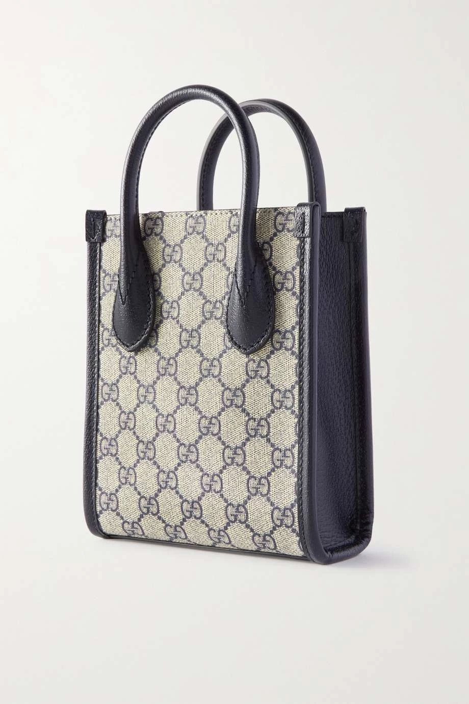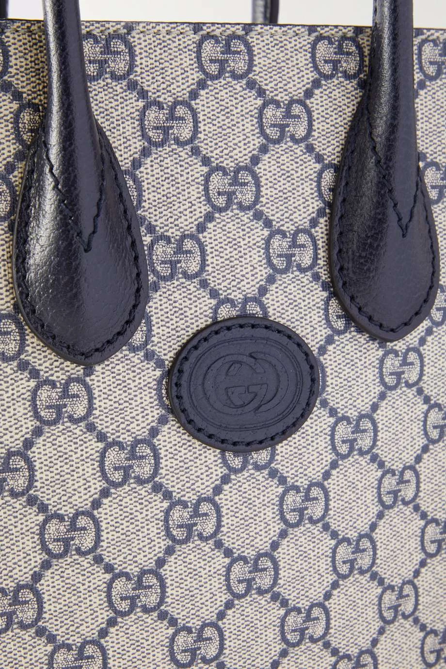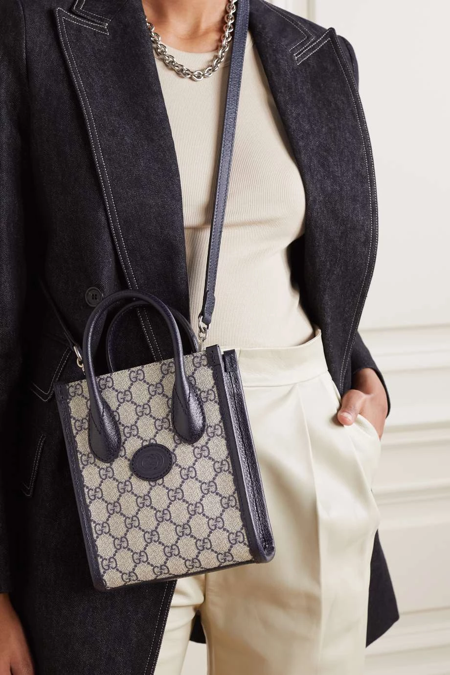 Alessandro Michele stöbert gerne im Archiv von Gucci und kreiert dann neue Modelle, die sich durch charakteristische Designelemente des Hauses auszeichnen. Diese kompakte Tote besteht aus beschichtetem Canvas mit dem markentypischen „GG“-Muster und hat Besätze aus strukturiertem Leder. Sie lässt sich an den Henkeln oder mithilfe des langen Riemens über der Schulter tragen.