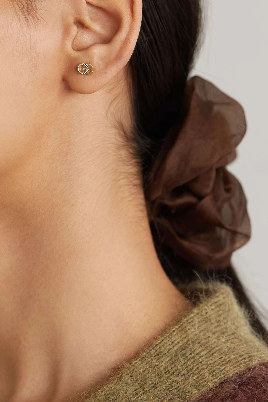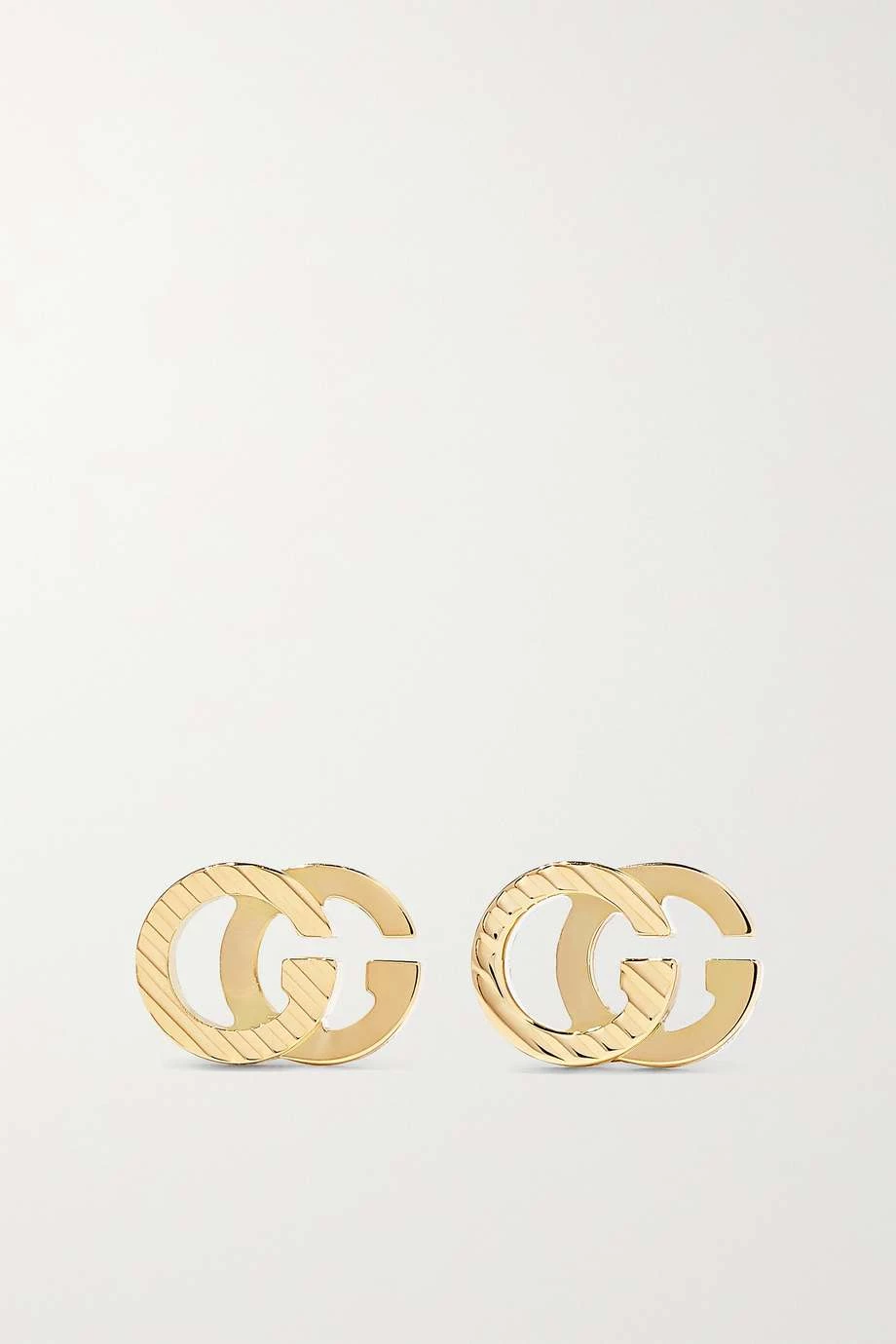 Die „GG Running“ Ohrringe von Gucci zeigen sich in der Form des labeltypischen Logos und eignen sich daher perfekt als Geschenk für Fans der Marke. Das Paar wurde in Italien aus 18-karätigem Gold gefertigt und teilweise mit diagonalen Streifen graviert.