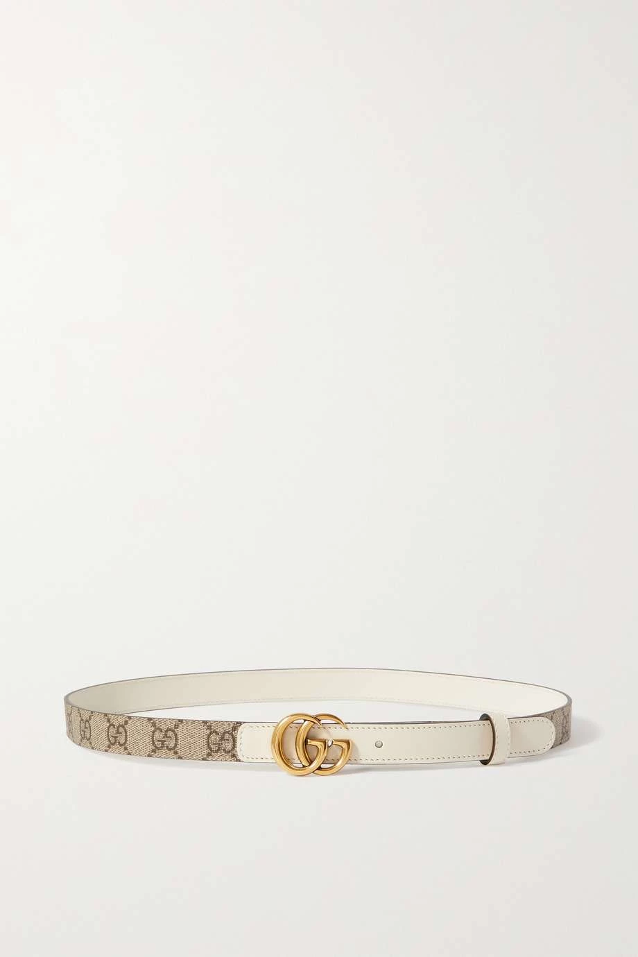 Dieser Gürtel aus beständigem beschichtetem Canvas ist mit glattem Leder hinterlegt, bei dessen Gerbung weder Metall noch Chrom zum Einsatz gekommen sind. Das Modell mit dem markentypischen Monogrammuster ist vorne mit dem ineinandergreifenden „GG“-Detail in Gold verziert.