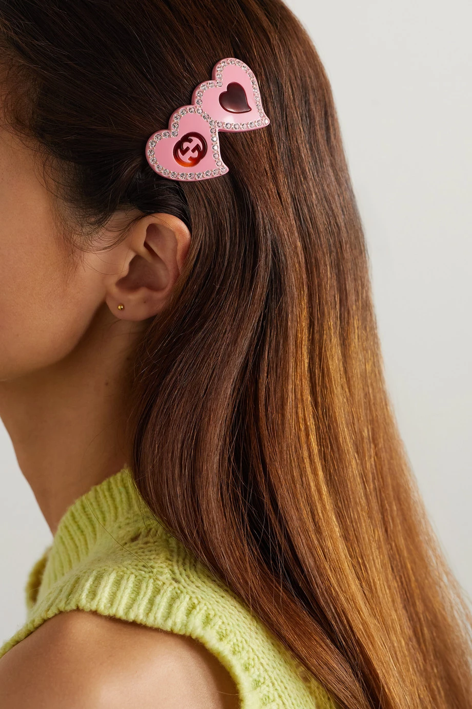 GUCCI Haarspange Aus Harz Mit Goldfarbenen Details Und Kristallen ,Pink