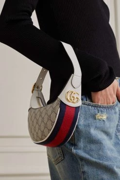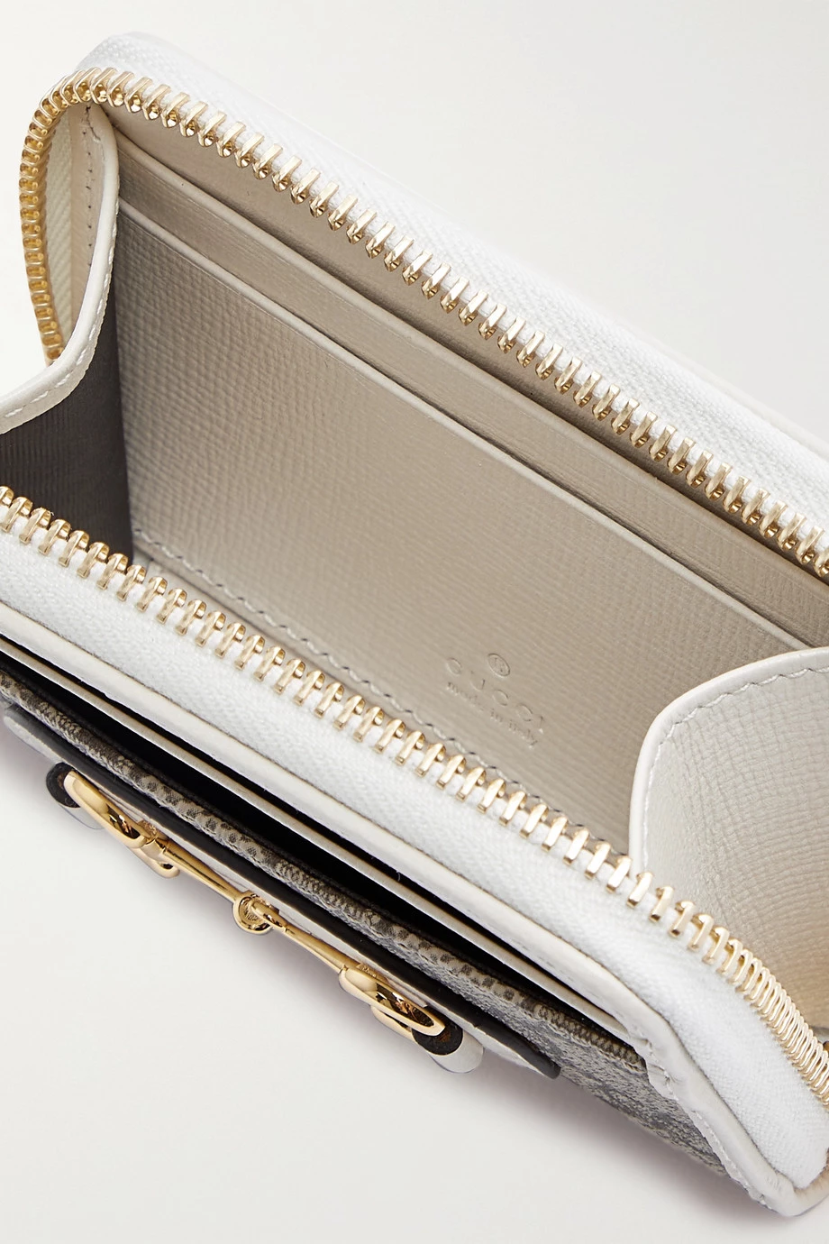 Das „Horsebit 1955“ Portemonnaie von Gucci wurde in Italien aus dem beschichteten „Supreme“-Canvas der Marke gefertigt und mit Glattleder besetzt. Zudem zeigt sich das kompakte Accessoire mit dem charakteristischen Detail sowie innen und außen liegenden Einsteckfächern.