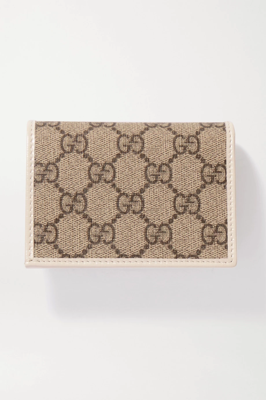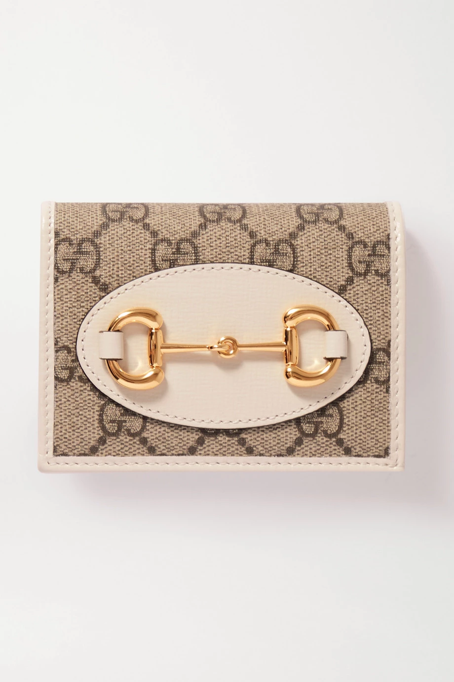 Dieses kleine Portemonnaie von Gucci wurde in Italien aus beschichtetem Canvas mit Logomuster gefertigt und mit dem markentypischen „Horsebit 1955“-Detail gestaltet. Es hat sechs Kartenschlitze und ein Reißverschlussfach für Münzen und Quittungen. Zudem schützen die Lederbesätze vor Schäden, damit das Accessoire viele Jahre lang hält.