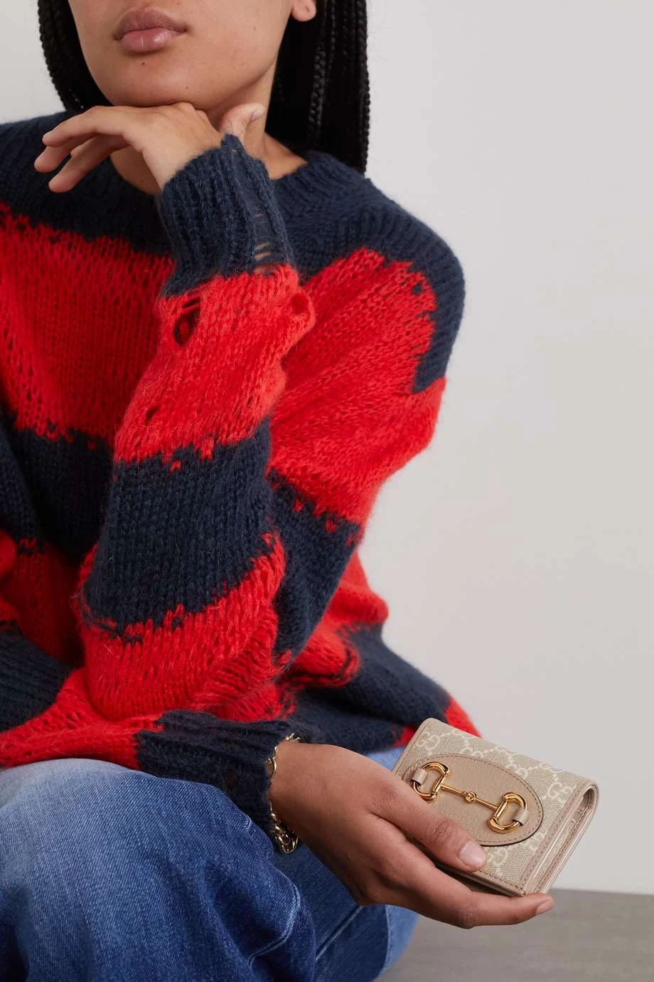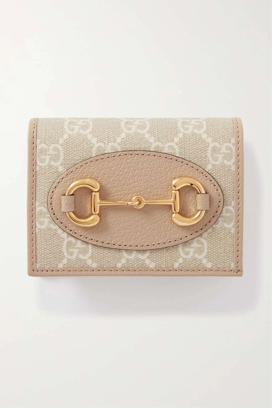 Dieses kleine Portemonnaie von Gucci wurde in Italien aus beschichtetem Canvas mit Logomuster gefertigt und mit dem markentypischen „Horsebit 1955“-Detail gestaltet. Es hat sechs Kartenschlitze und ein Reißverschlussfach für Münzen und Quittungen. Zudem schützen die Lederbesätze vor Schäden, damit das Accessoire viele Jahre lang hält.