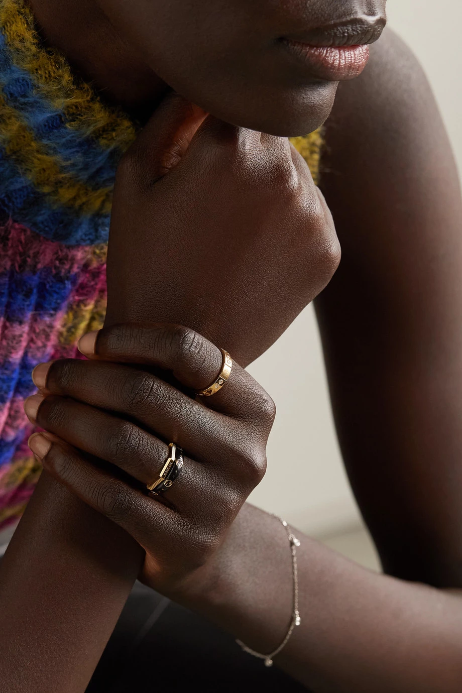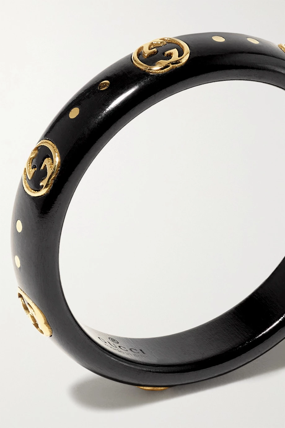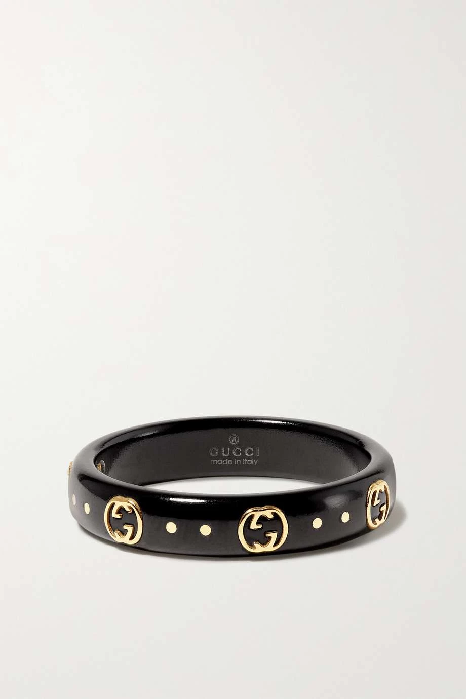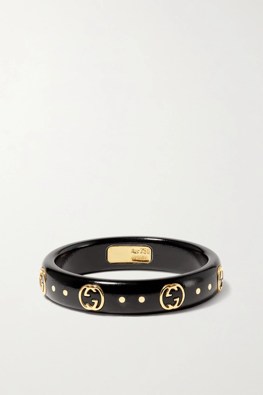 Der „Icon“ Ring von Gucci wurde in Italien aus gänzendem schwarzem Zirkon gefertigt und mit dem charakteristischen „GG“-Logo aus Gold gestaltet. Das Modell lässt sich wunderbar mit anderen Schmuckstücken kombinieren und ist somit die ideale Wahl für den Alltag.
