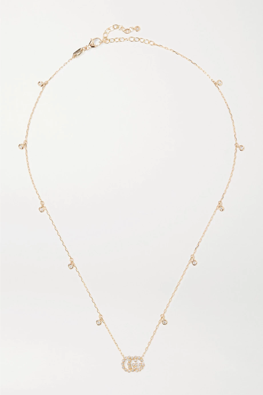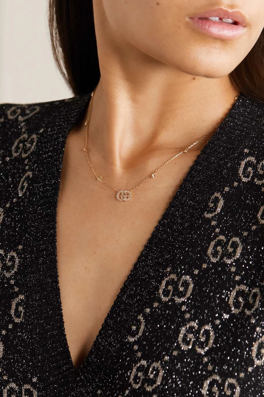 Das „GG“-Logo von Gucci gehört zu den unverkennbaren Markenzeichen des italienischen Modehauses und steht somit für über 95 Jahre ereignisreicher Geschichte. Mit dieser zarten Kette aus 18-karätigem Gold lässt sich das Motiv auf elegante und unkomplizierte Weise jeden Tag tragen. Das Schmuckstück wurde mit funkelnden Diamanten von insgesamt 0,22 Karat besetzt und eignet sich alternativ auch hervorragend als Geschenk für Fans des Labels.