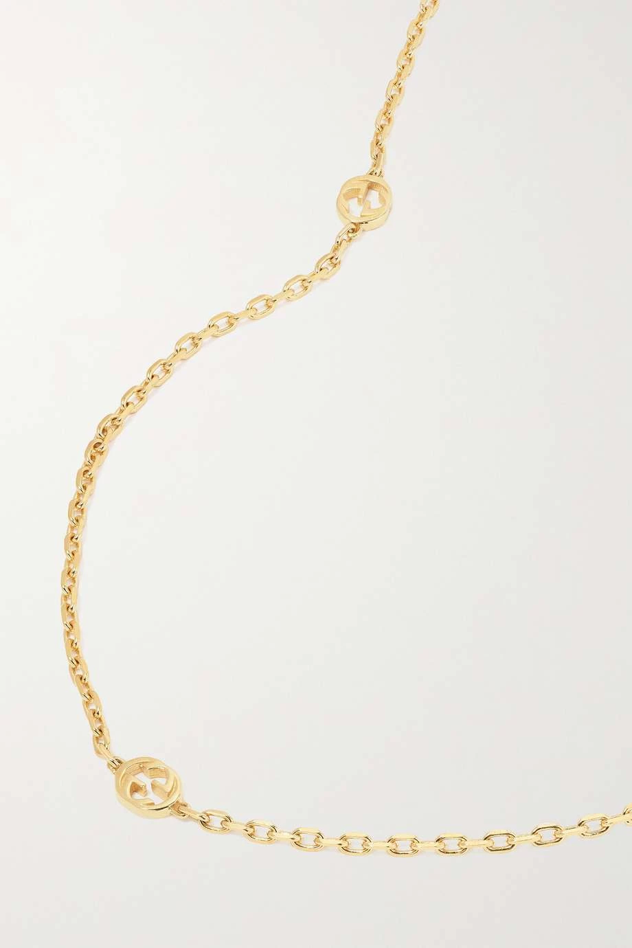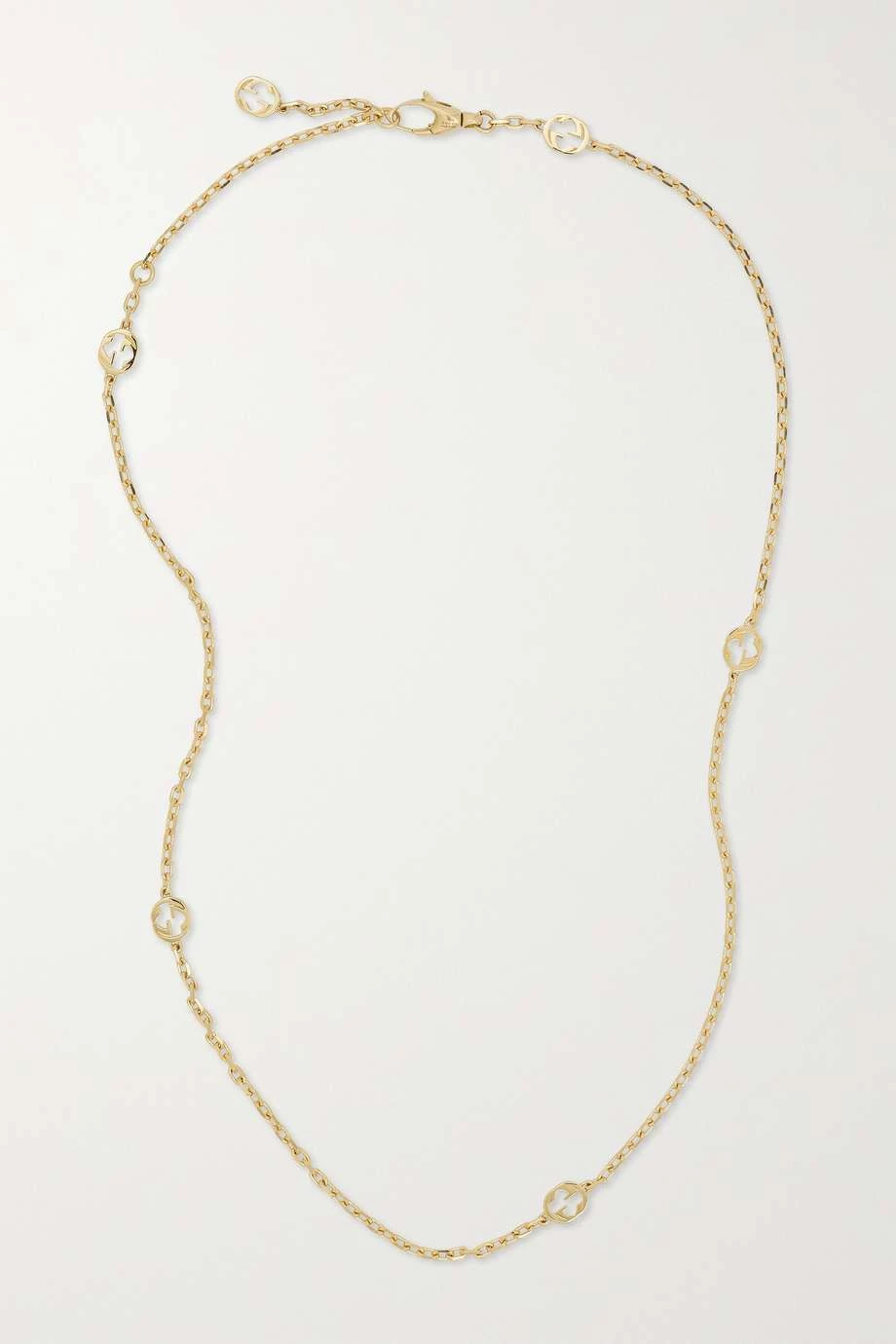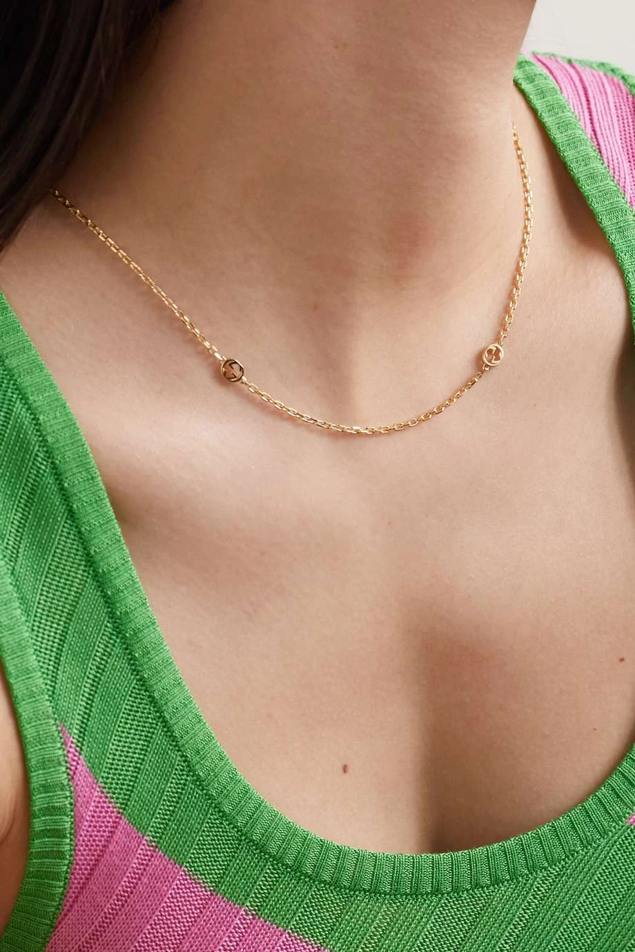 Eine schicke Kette rundet praktisch jedes Outfit ab. Diese zarte Variante von Gucci wurde in Italien aus 18-karätigem Gold gefertigt und mit den ikonischen „GG“-Logos verziert. Unser Styling-Team kombiniert das Schmuckstück am liebsten mit anderen Modellen in unterschiedlicher Länge.