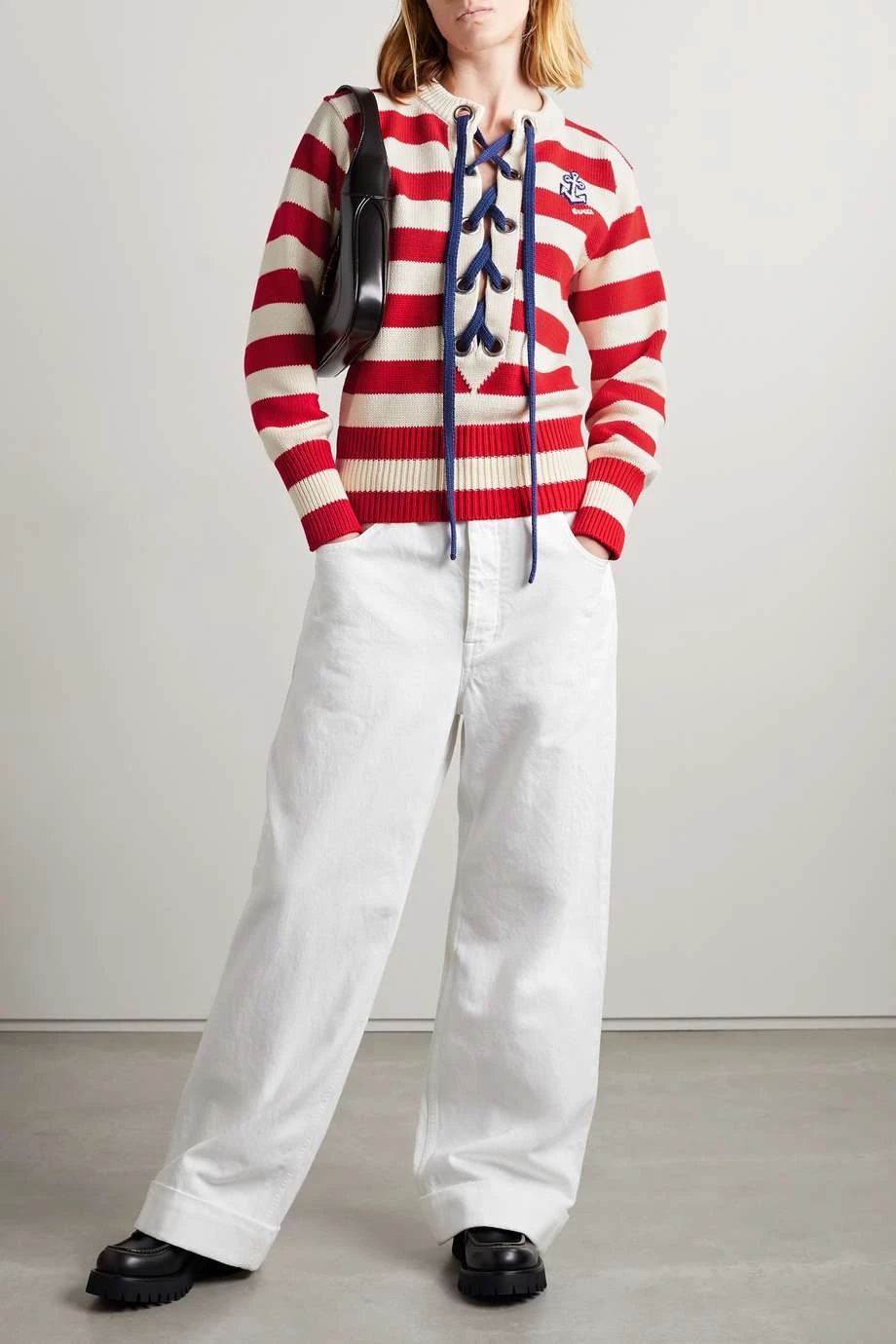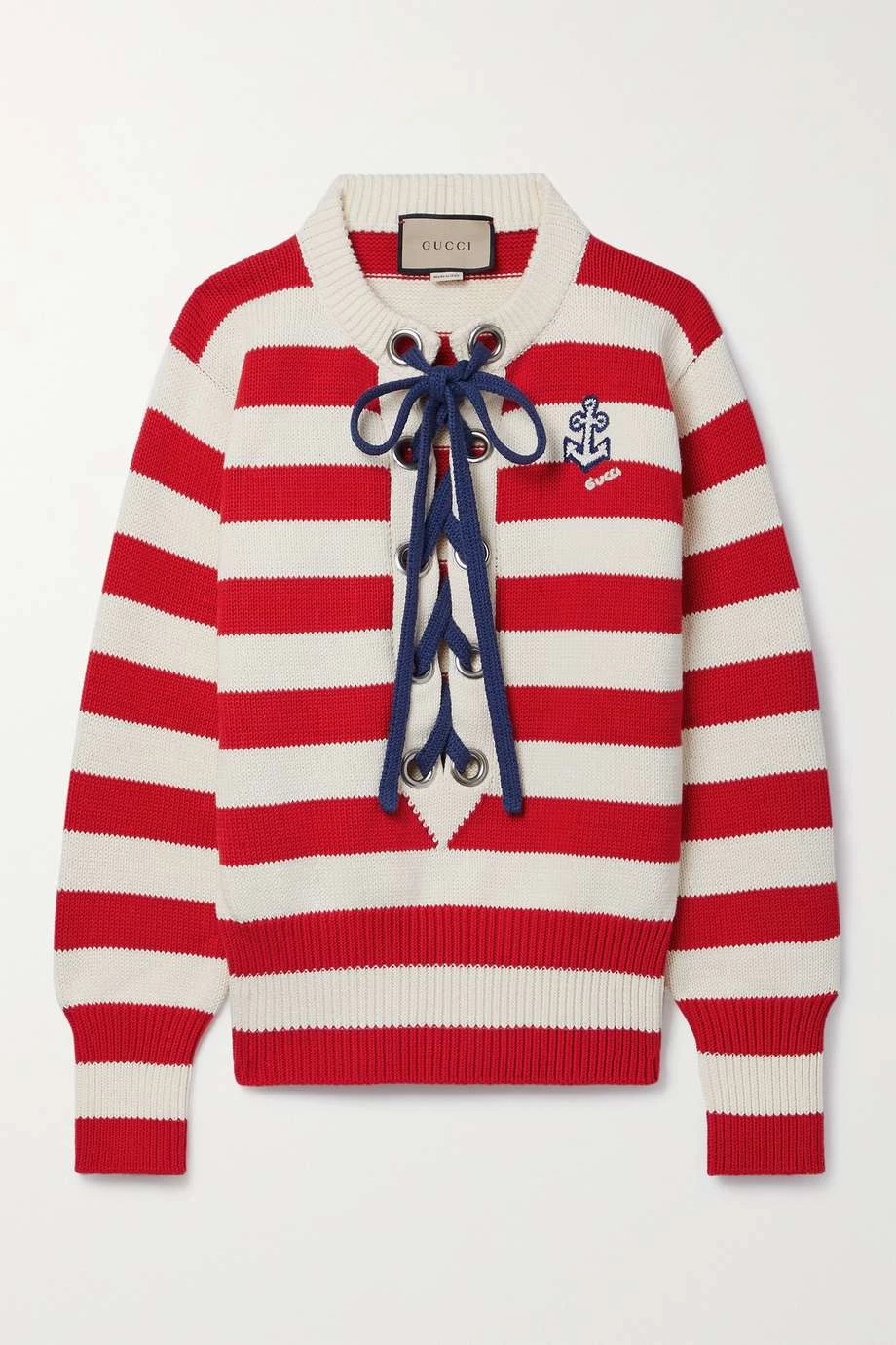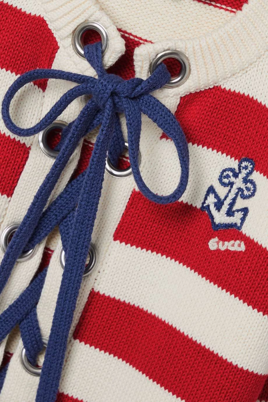 GUCCI Love Parade Gestreifter Pullover Aus Baumwolle Mit Schnürung Und Applikation ,Rot