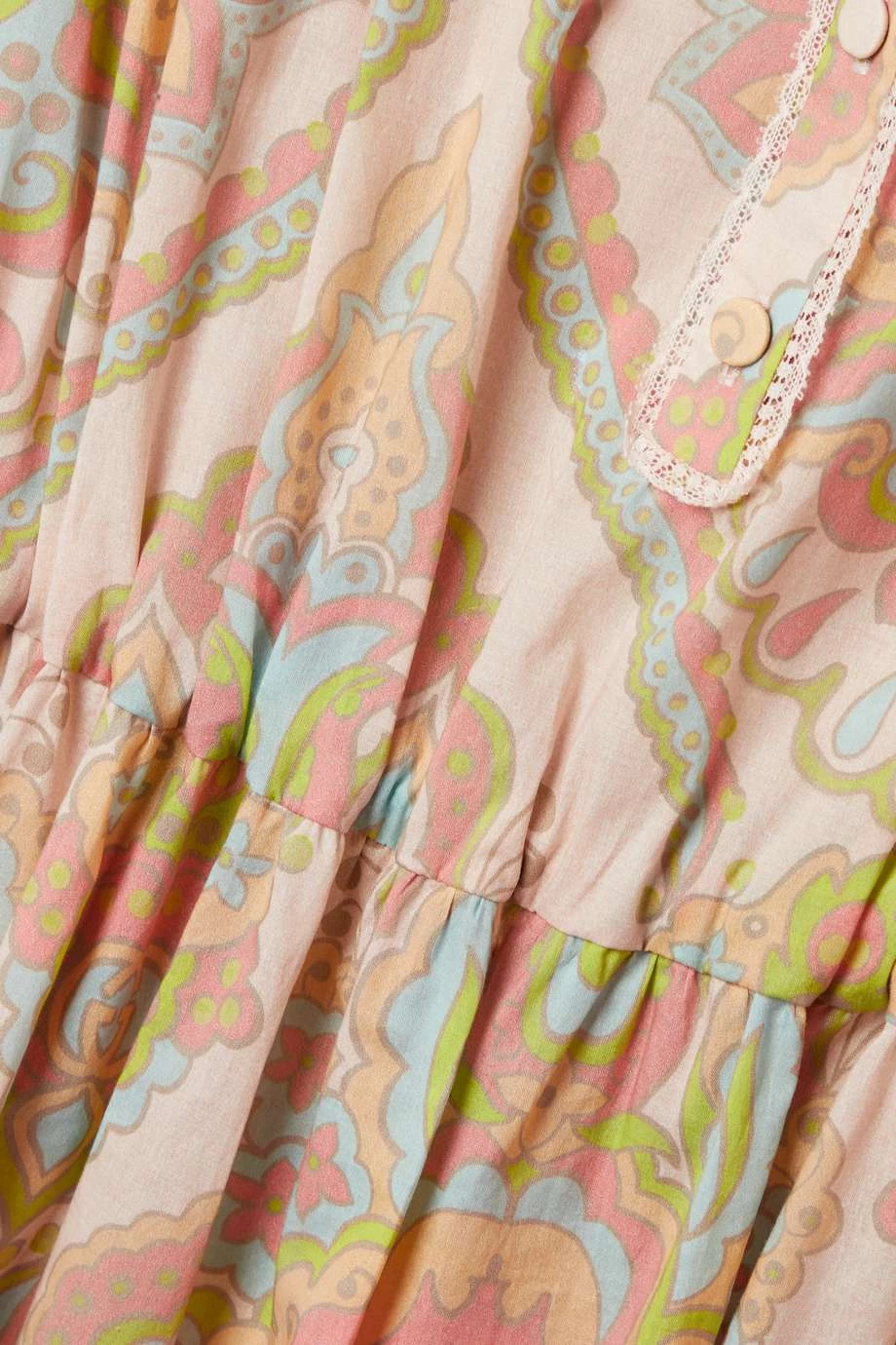 Dank Mandarinkragen, Glockenärmeln und Rüschen hat dieses Kleid von Gucci ein viktorianisch-romantisches Flair. Es wurde in Italien aus leichtem Baumwoll-Voile mit einem Blumenprint, der an Damast erinnert, gefertigt. Wenn Sie den Look der F/S 22-Laufstegshow anstreben, empfehlen wir Stiefel dazu.