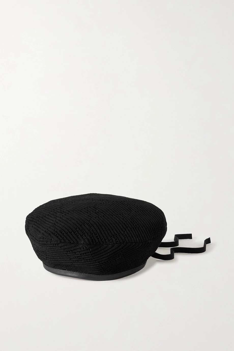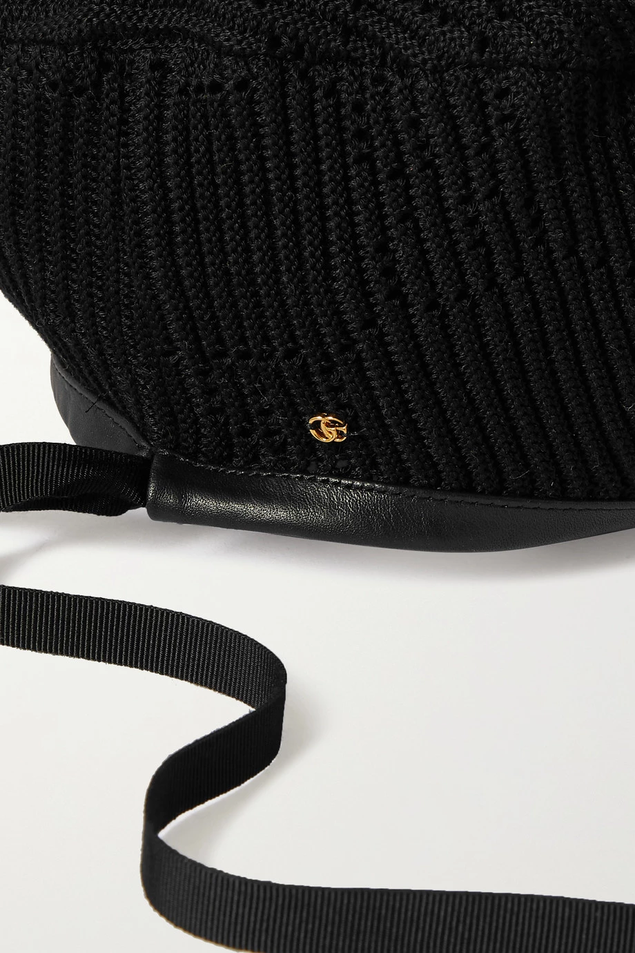 Das „Malibu“ Barett von Gucci besteht aus gehäkelter Baumwolle, weshalb es kuscheliger als klassische Varianten ist. Zudem zeigt es sich mit einer Einfassung aus geschmeidigem Leder und einer kleinen Version des „GG“-Logodetails. Ein schmales Ripsband sorgt dafür, dass das Accessoire nicht verrutscht.