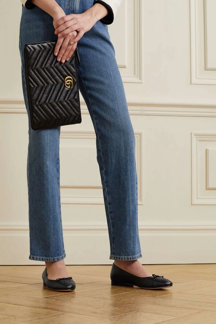 GUCCI Marmont Ballerinas Aus Gestepptem Leder Mit Logostickerei ,Schwarz