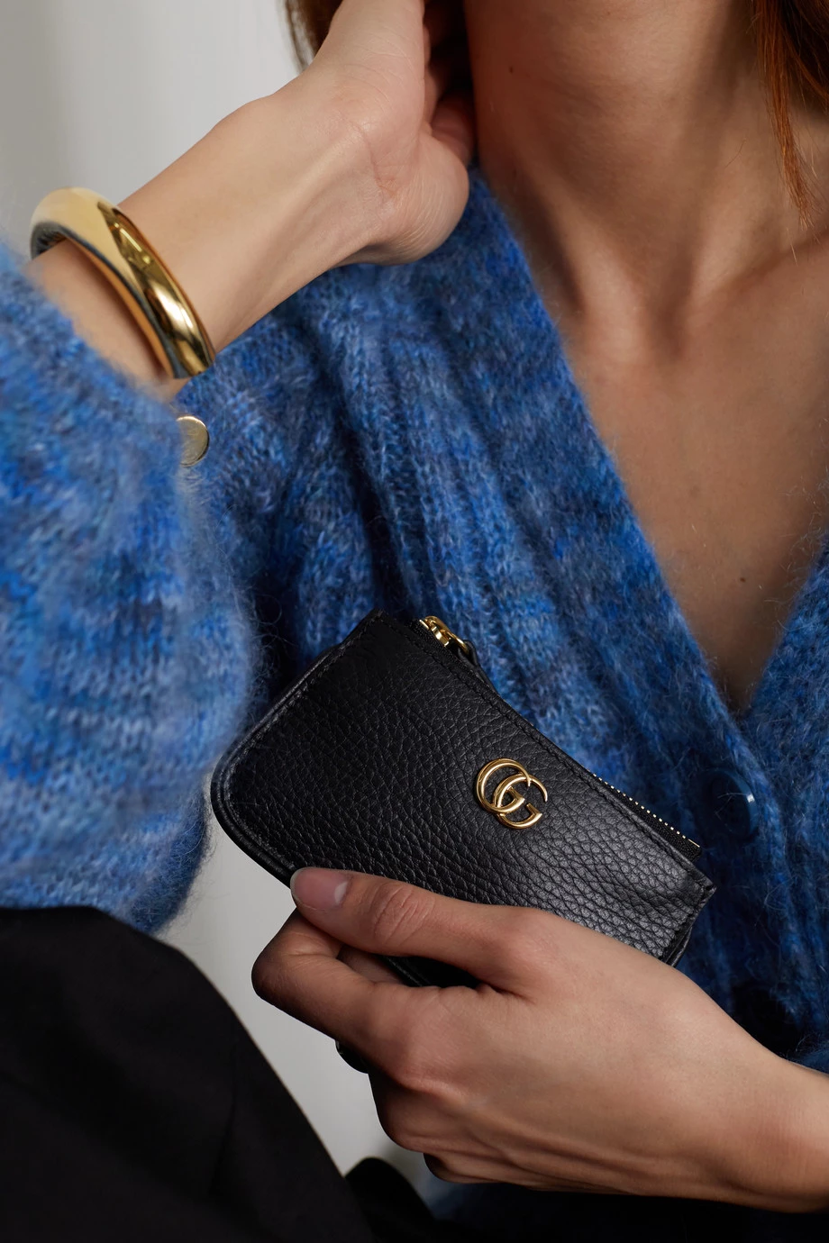Der „Marmont“ Beutel von Gucci besteht aus weichem strukturiertem Leder, das ausgesprochen langlebig ist, und zeigt sich mit goldglänzenden Details wie dem „GG“-Emblem. Befestigen Sie ihn mithilfe des Karabiners an Ihrer Lieblingstasche.