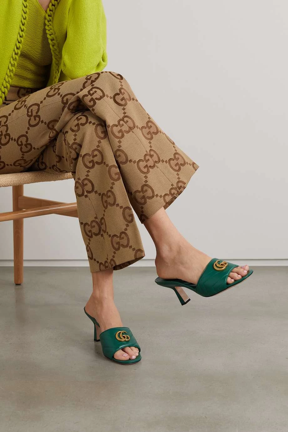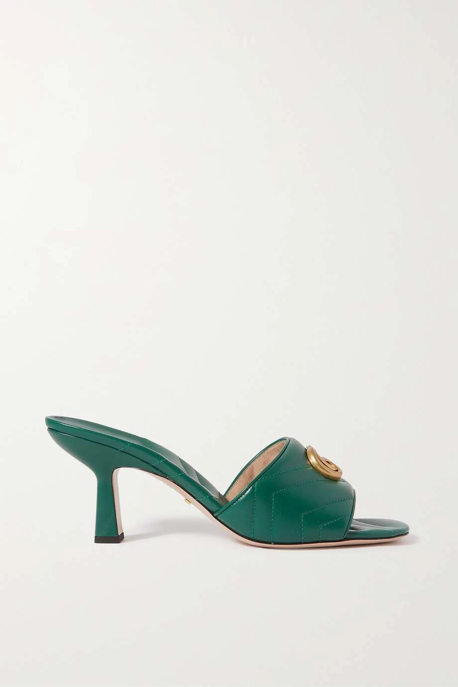 Diese Mules entstammen der beliebten „Marmont“ Reihe von Gucci und wurden wie die berühmten Taschen des Hauses aus gestepptem Leder gefertigt. Das Paar ist am breiten Riemen mit dem „GG“-Logodetail der Marke verziert und zeichnet sich durch einen skulpturalen Kitten-Heel aus. Es passt genauso gut zu smarten Hosen wie Cocktailkleidern.