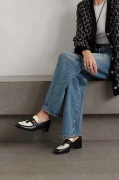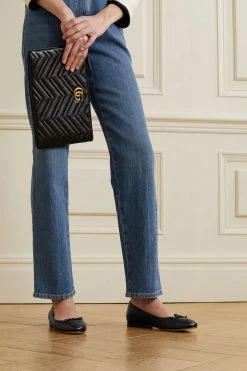 Der massive Blockabsatz der „Marmont“ Sandalen von Gucci steht in einem schicken Kontrast zu den schmalen Riemchen des Modells, das durch das ikonische „GG“-Emblem auf Anhieb erkennbar ist. Tragen Sie das goldfarbene Paar aus hochglänzendem Craquelé-Leder je nach Anlass zu Röcken, Jeans oder Tailoring.