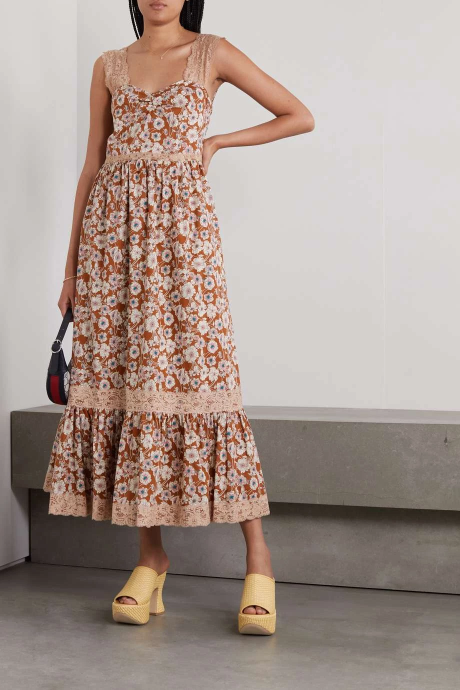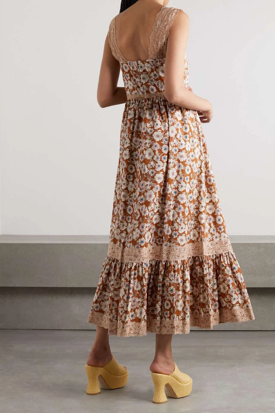 Dieses fließende Maxikleid aus der „Love Parade“ Kollektion, welche Gucci für F/S 2022 entwarf, ist perfekt für Picknicks und romantische Ausflüge aufs Land. Es besteht aus geblümten Seiden-Twill, der von Spitzenbesätzen akzentuiert wird, und hat einen Rock mit ausgestelltem Abschluss. Mit einer Sonnenbrille und Pantoletten erzielen Sie das Runway-Styling – ob Sie den Cowboyhut ebenfalls übernehmen, ist Ihnen überlassen.