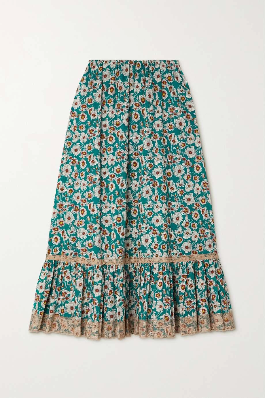 Die F/S 22-Kollektion von Gucci, die den Namen „Love Parade“ trägt, ist eine Hommage an das klassische Hollywood und die entspannte Leichtigkeit von Los Angeles. Dieser Midirock wurde aus Baumwollpopeline gefertigt und mit einem Muster aus wilden Blumen bedruckt. Das Modell hat einen weich fallenden Rock mit Teilungsnaht und Spitzenbesätzen. Wir empfehlen das passende Hemd dazu.
