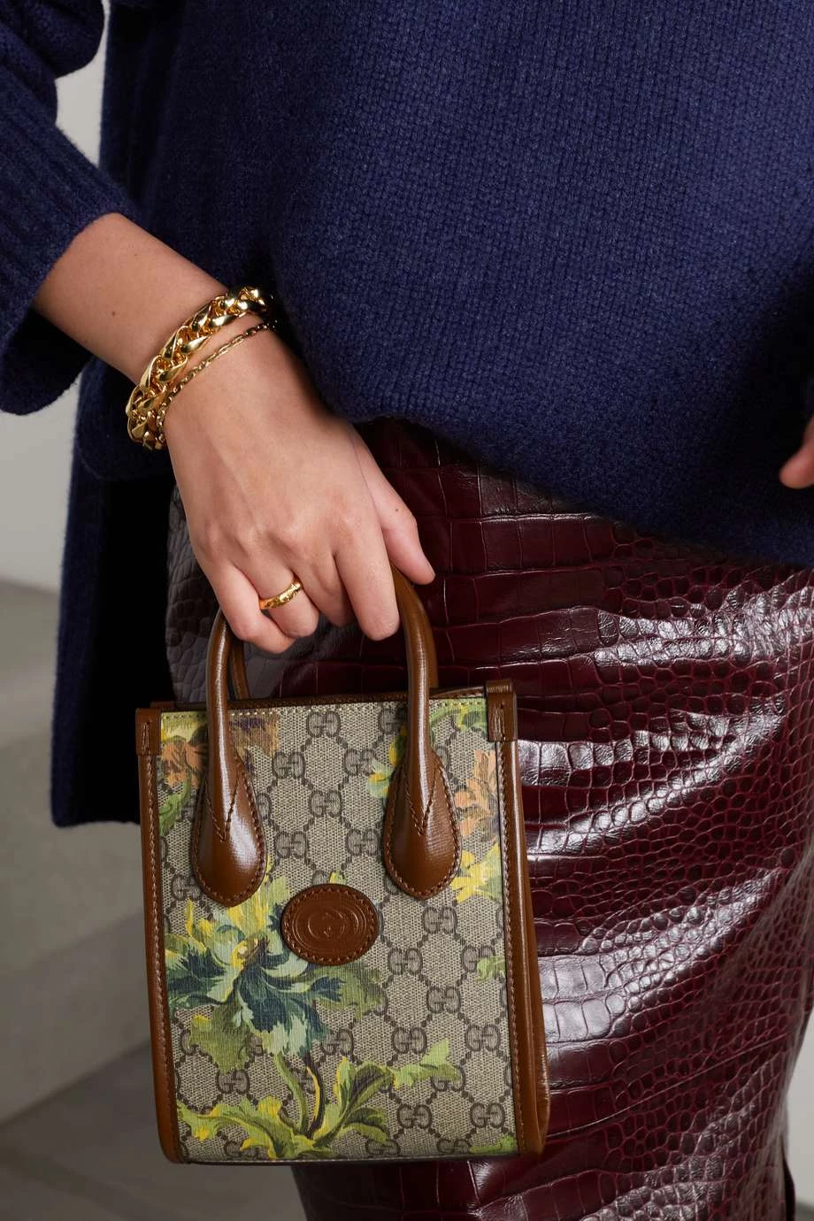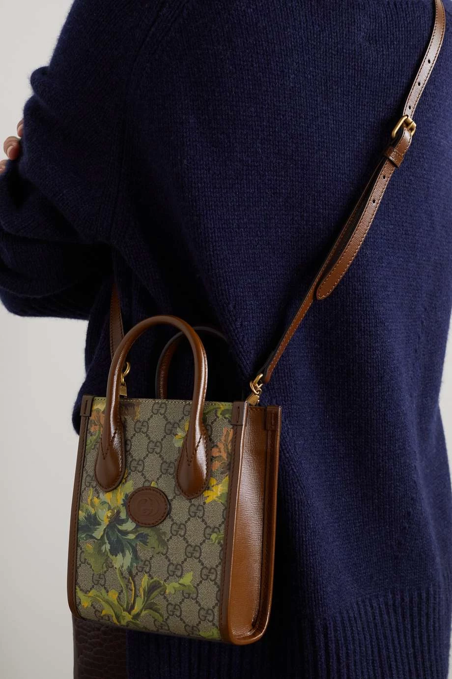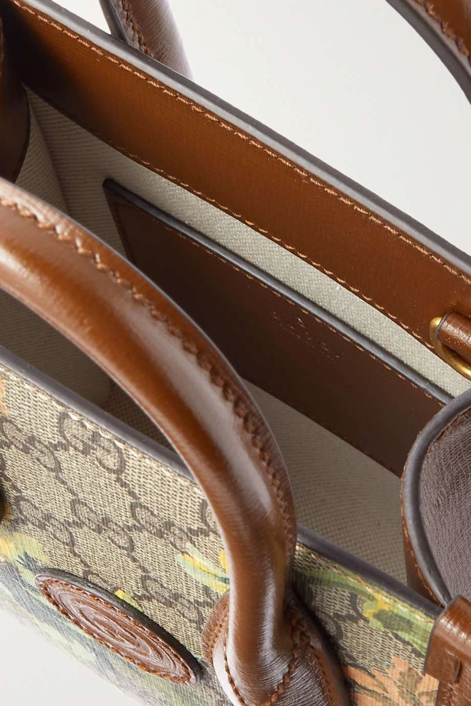 GUCCI Mini Tote Aus Beschichtetem Canvas Mit Print Und Lederbesätzen ,Braun