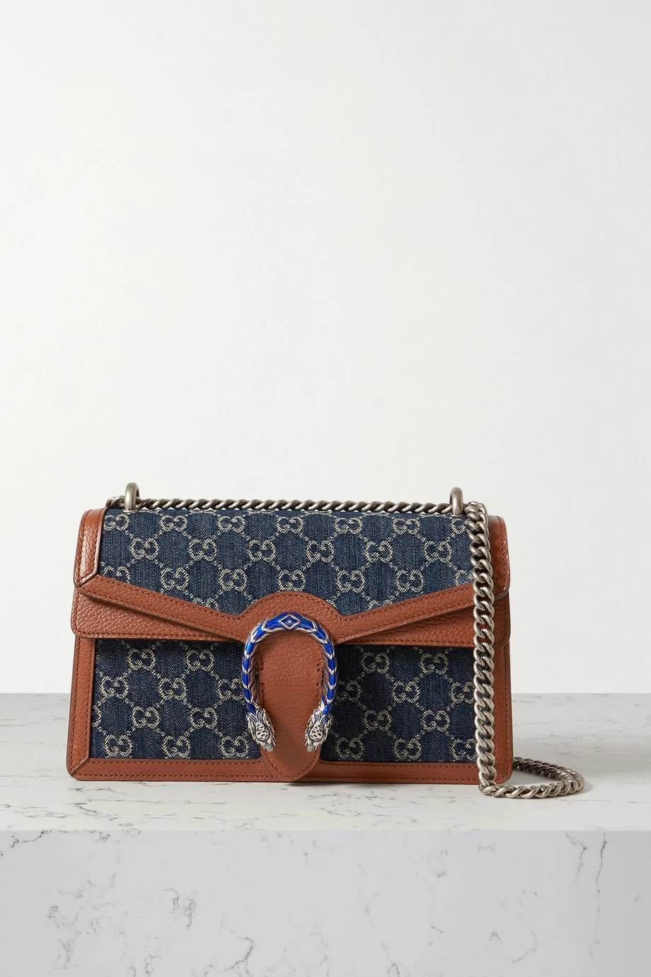 Die „Dionysus“ Schultertasche von Gucci fällt nicht nur aufgrund des Bio-Denims in unsere Kategorie NET SUSTAIN: Das braune Leder wurde chromfrei gegerbt, wodurch umliegende Gewässer weniger belastet werden und die Personen, die das Material handhaben, nicht gefährdet sind. Obschon das Accessoire kompakt ausfällt, bietet es dank der seitlichen Falten überraschend viel Platz. Den Abschluss bildet ein farbenkräftiger Verschluss.
