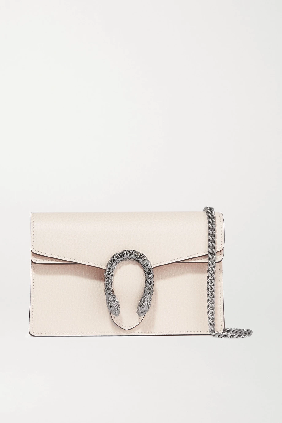 Besonders kompakte Taschen sind bereits seit einiger Zeit äußerst angesagt und werden es auch in der H/W 20-Saison sein. Die „super mini“ Version des „Dionysus“ Modells von Gucci ist bei Influencerinnen ausgesprochen beliebt: Das in Italien gefertigte Accessoire aus chromfrei gegerbtem Leder hat schwarz bemalte Kanten und verfügt über den charakteristischen silberfarbenen Verschluss, den in diesem Fall funkelnde Steine zieren.