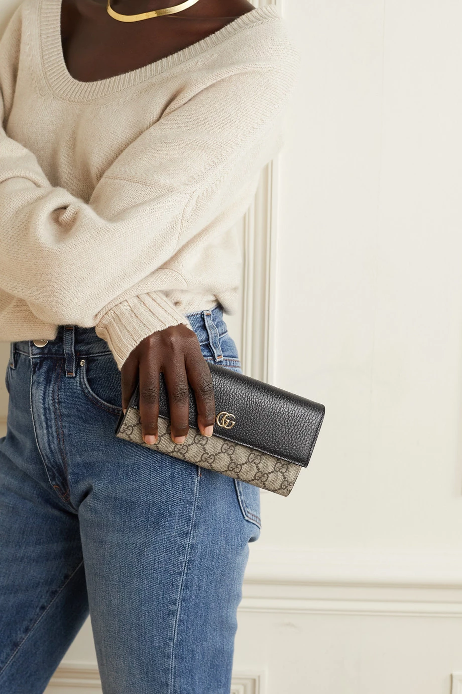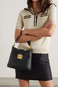 GUCCI + NET SUSTAIN GG Marmont Petite Schultertasche Aus Strukturiertem Leder Und Beschichtetem Canvas Mit Print ,Schwarz
