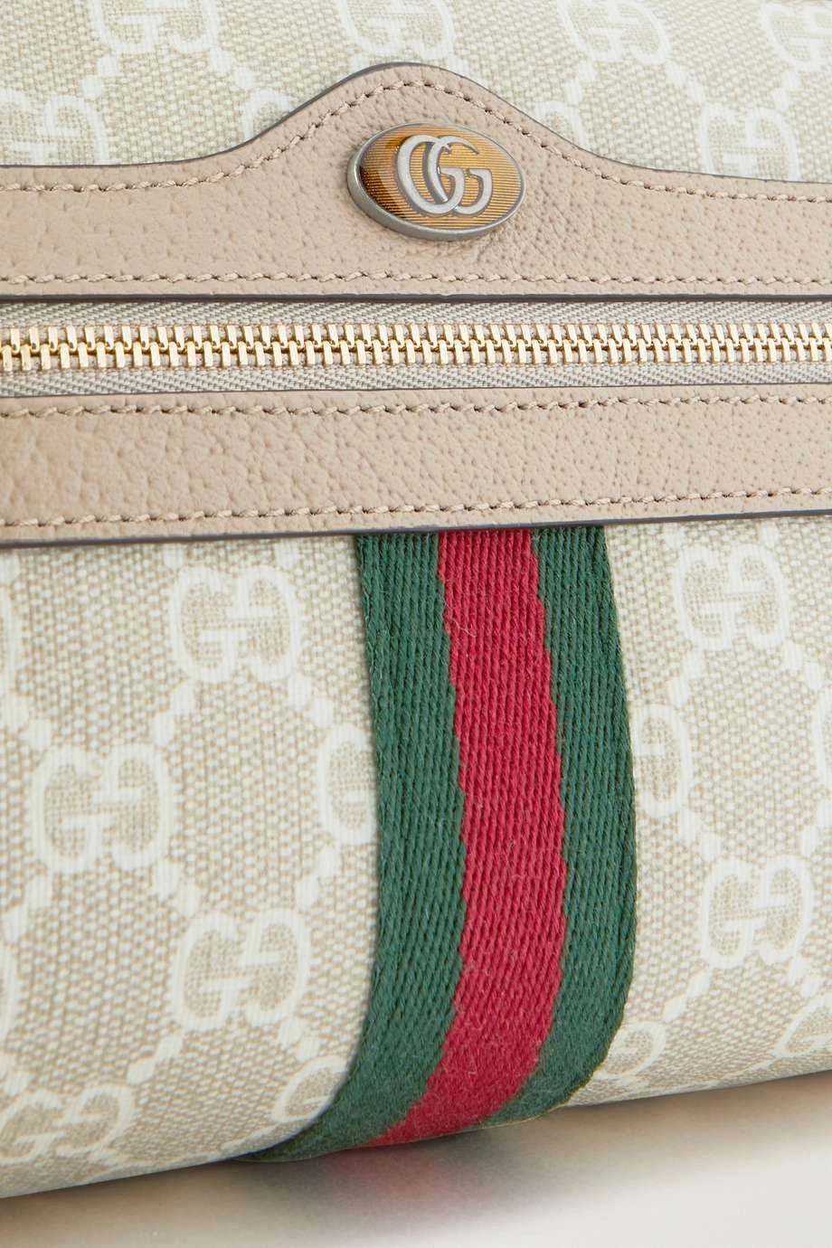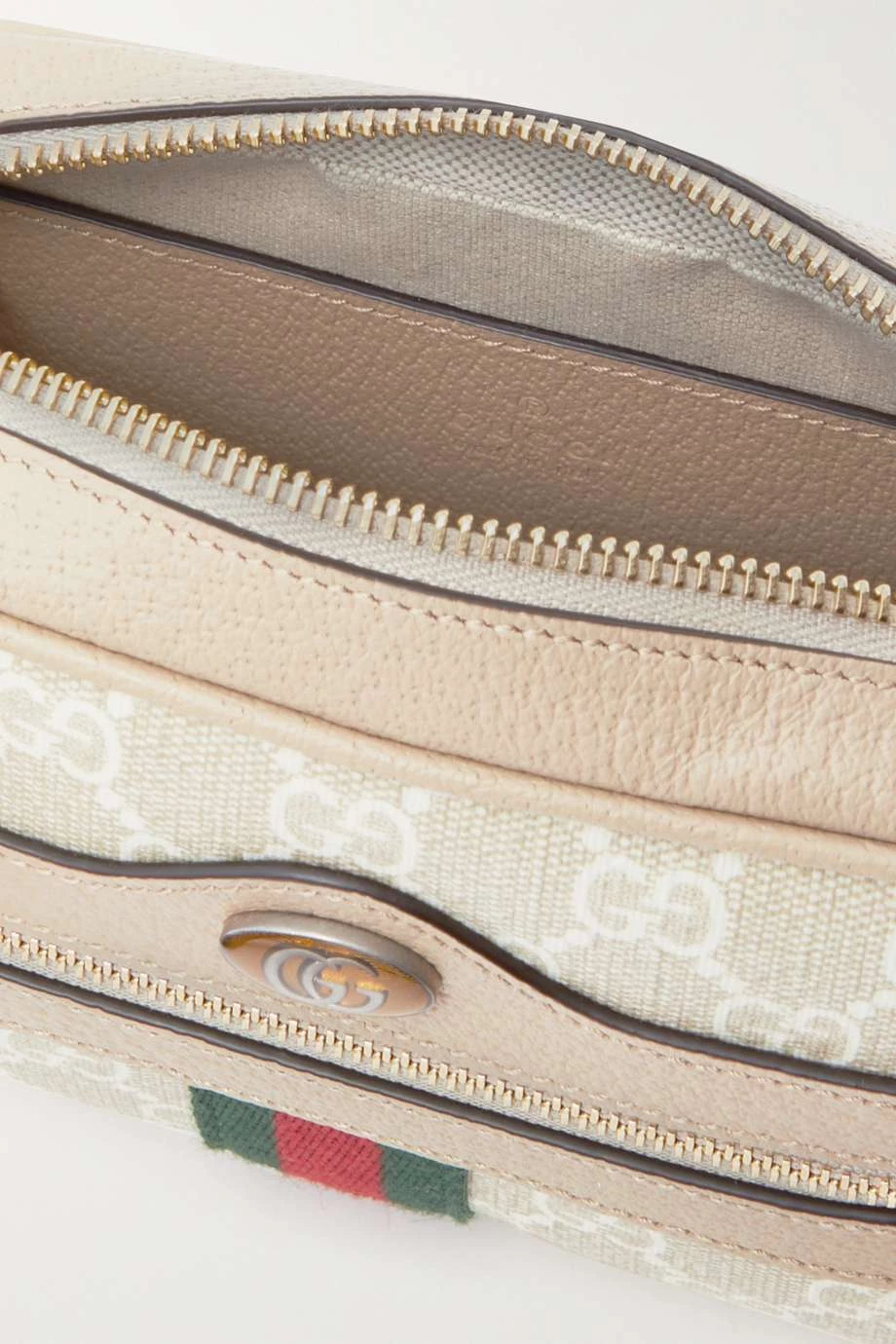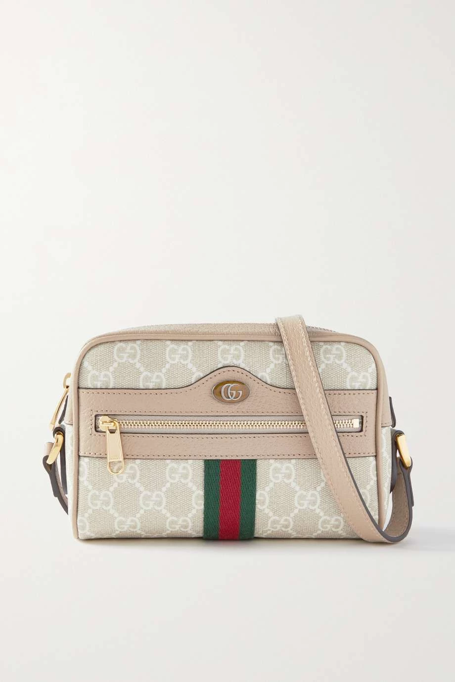 Kamerataschen sind nach ihrer praktischen kompakten Form benannt. Die „Ophidia“ Version von Gucci wurde aus beschichtetem Canvas mit Logoprint gefertigt und zeigt sich mit Lederbesätzen sowie einem Webstreifen an der Vorderseite. Verstellen Sie die Länge des Riemens nach Belieben.