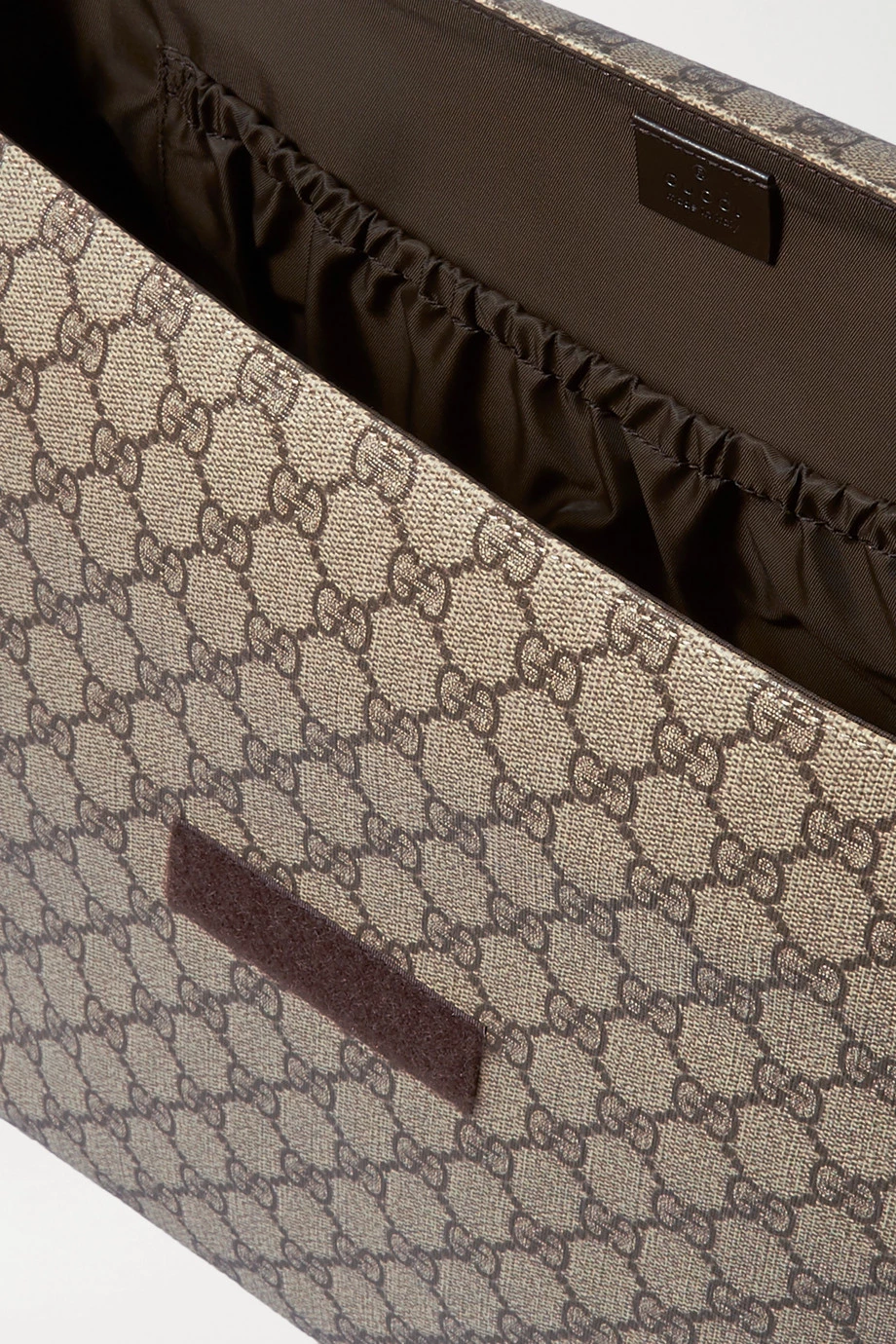 Die bedruckte „Ophidia“ Wickeltasche von Gucci wurde in Italien aus beständigem beschichtetem Canvas gefertigt, der abwaschbar und resistent gegen Schrammen und Kratzer ist. Das Modell hat mehrere Fächer für Babyfläschchen, Reinigungstücher und Lätzchen und kann dank des langen verstellbaren Riemens auch über den Griff Ihres Kinderwagens gehängt werden. Außerdem verfügt es über eine faltbare, gepolsterte Wickelunterlage.