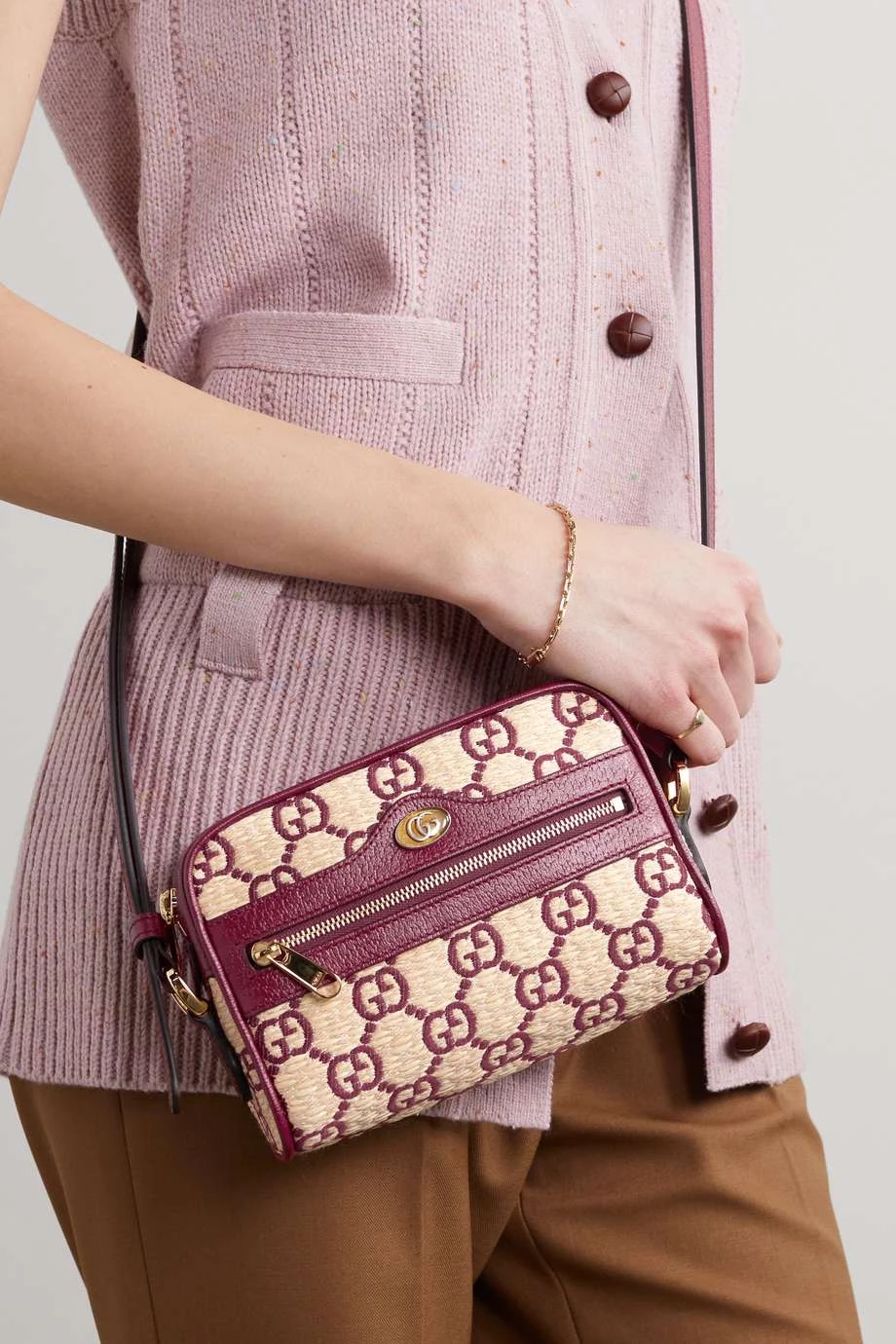 Das „Ophidia“ Modell mit „GG“-Logomuster ist aus den Kollektionen von Gucci nicht mehr wegzudenken. Diese Version, die für F/S 2022 neu interpretiert wurde, zeigt sich in Form einer schicken Kameratasche und hat Besätze aus strukturiertem Leder. Sie bietet genügend Platz für Essentials, die Sie im Alltag benötigen.
