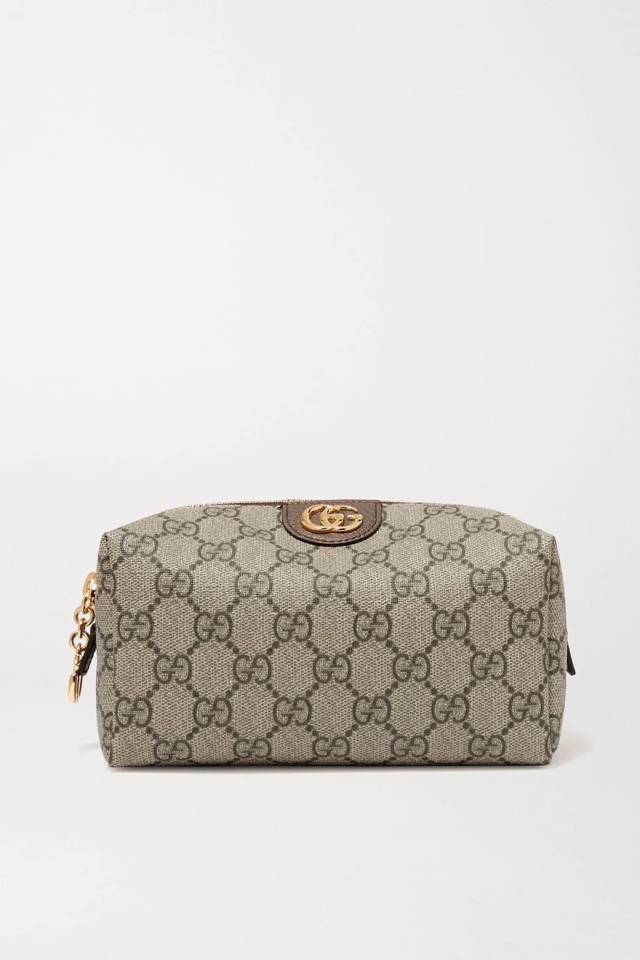 Diese Kosmetiktasche von Gucci ist das perfekte Geschenk für jemanden, der Make-Up liebt und großer Fan des italienischen Modehauses ist. Das Modell besteht aus dem bedruckten beschichteten Canvas, für den das Label bekannt ist, und ist mit Details aus strukturiertem Leder versehen. Dank der mittleren Größe lässt sich von Foundation über Lippenstifte, Lidschattenpaletten und Pinsel alles leicht verstauen.