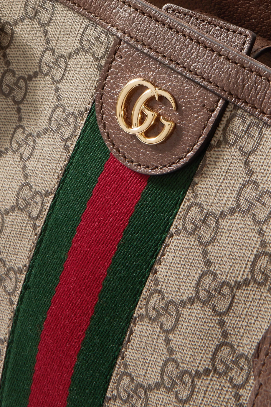 Die „Ophidia“ Tote aus robustem beschichtetem Canvas von Gucci ist mit strukturiertem Leder eingefasst und weist alle typischen Markenzeichen des Hauses auf – Webstreifen, das brünierte „GG“-Logo sowie das „Supreme“-Muster. Im geräumigen Inneren findet sich ein Reißverschlussfach sowie Platz für alle wichtigen Alltagsbegleiter.
