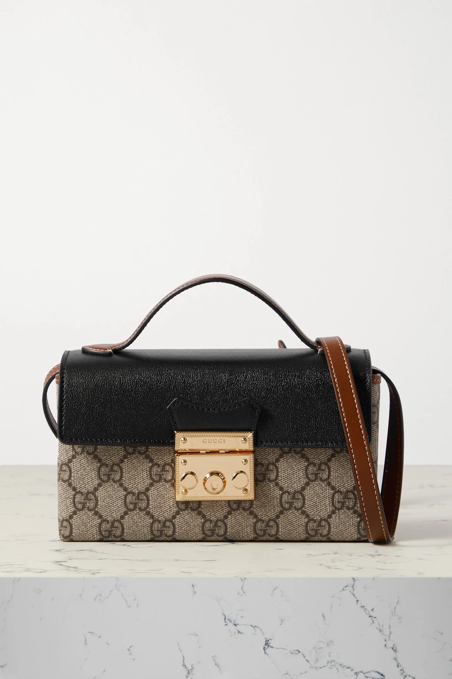 Die „Padlock“ Tote von Gucci wurde in Italien aus Leder und beschichtetem Canvas mit dem „GG“-Print der Marke gefertigt. Das formstabile Modell hat ein weich gefüttertes Inneres mit einem Fach für Ihre wichtigste Karte. Stimmen Sie Ihren Schmuck auf die goldglänzenden Details ab.