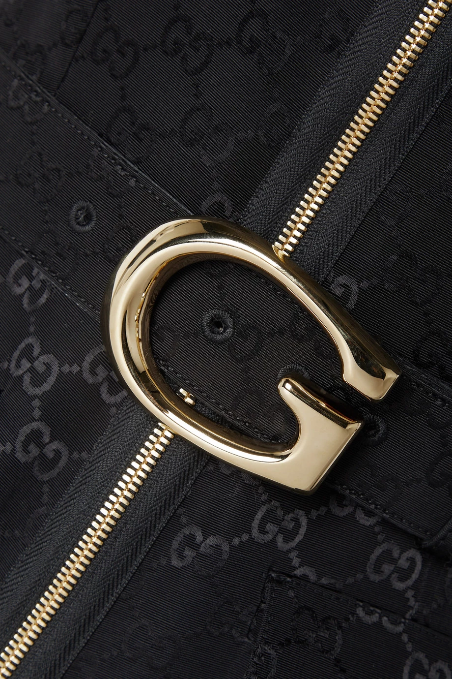 Dieser Playsuit von Gucci zeigt sich mit einem farblich abgestimmten „GG“-Logomuster sowie einer goldglänzenden Schnalle in Form der Initiale – die ikonischen Markenzeichen gehören schon seit den 70er-Jahren zu dem Haus. Der in Italien gefertigte Einteiler aus Jacquard aus einer Baumwollmischung hat eine taillierte Form und ein leicht lockeres Bein mit umgeklapptem Abschluss.