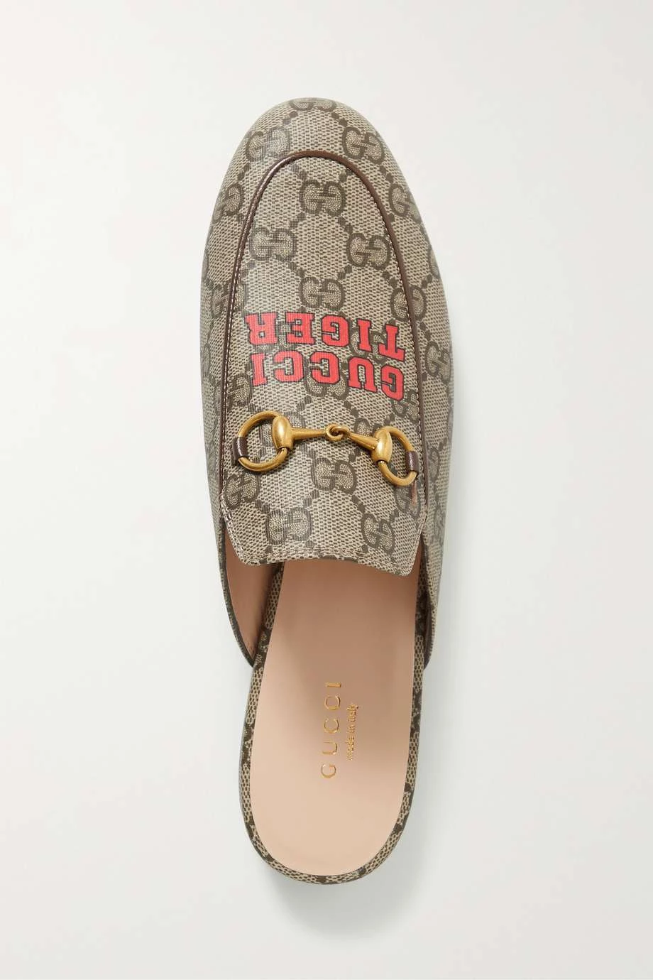Wir tragen die schicken „Princetown“ Slippers von Gucci nicht nur zu Hause, sondern auch auf der Straße. Das in Italien gefertigte Paar aus beschichtetem Canvas mit Logoprint ist neben dem charakteristischen goldglänzenden „Horsebit“-Detail der Marke auch mit dem Wort „Tiger“ verziert, das das Chinesische Neujahr symbolisiert. Das Modell mit eleganter mandelförmiger Kappe und flachem Absatz passt gleichermaßen gut zu Jeans wie smarten Hosen.