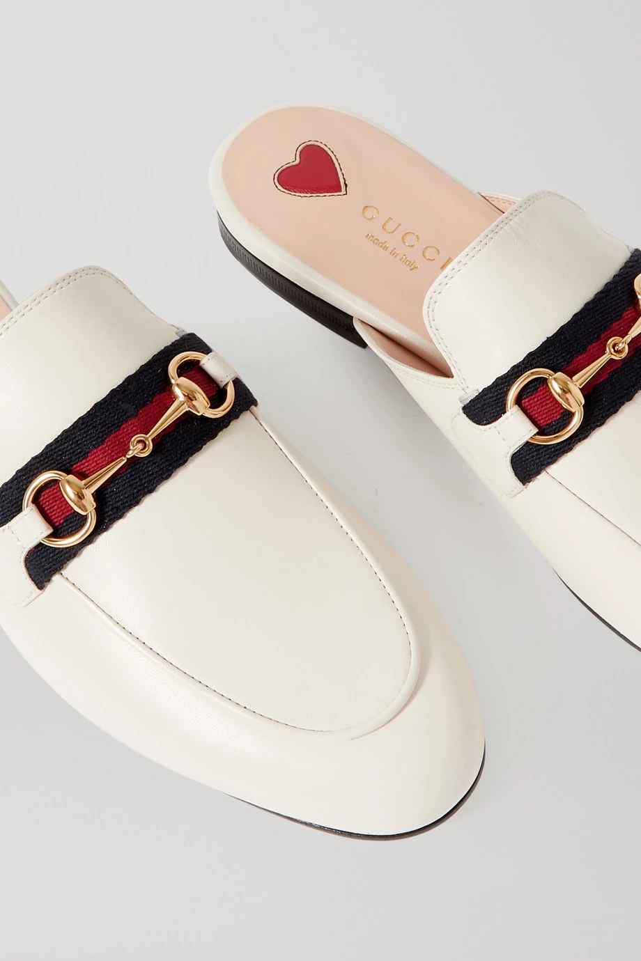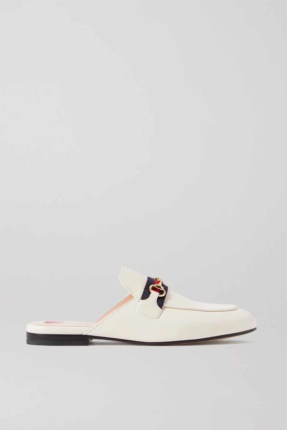 Wir tragen die schicken „Princetown“ Slippers von Gucci nicht nur zu Hause, sondern auch auf der Straße. Das in Italien gefertigte Paar aus glattem Leder ist neben dem charakteristischen goldglänzenden „Horsebit“-Detail der Marke auch mit einem zweifarbigen Canvas-Streifen verziert. Das Modell mit eleganter mandelförmiger Kappe und flachem Absatz passt gleichermaßen gut zu Jeans wie smarten Hosen.