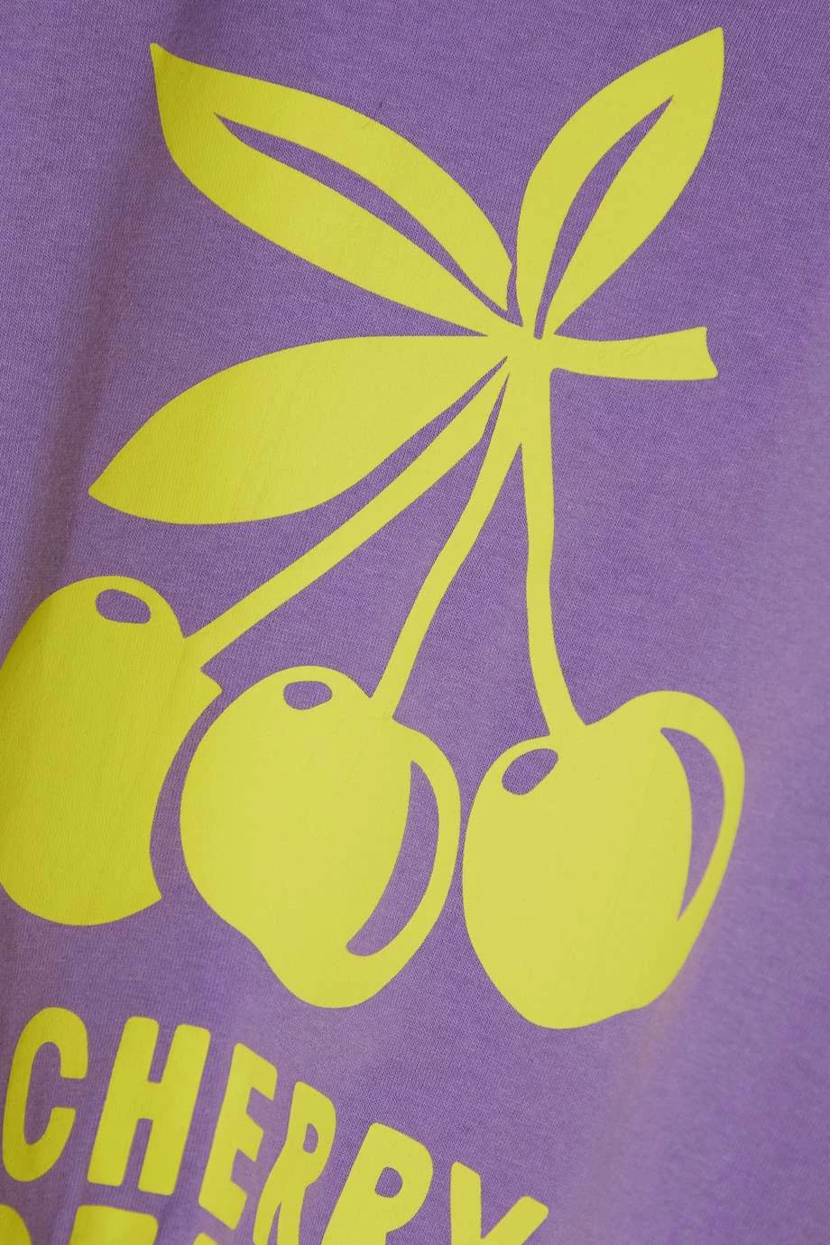 Fruchtige Motive kommen in den Kollektionen von Gucci immer wieder vor und dieses fliederfarbene T-Shirt ist mit Cartoon-artigen Kirschen in einem kontrastierenden Pastellgelb bedruckt. Das Modell besteht aus leichtem Baumwoll-Jersey und hat überschnittene Schultern, die die leicht lockere Passform betonen.