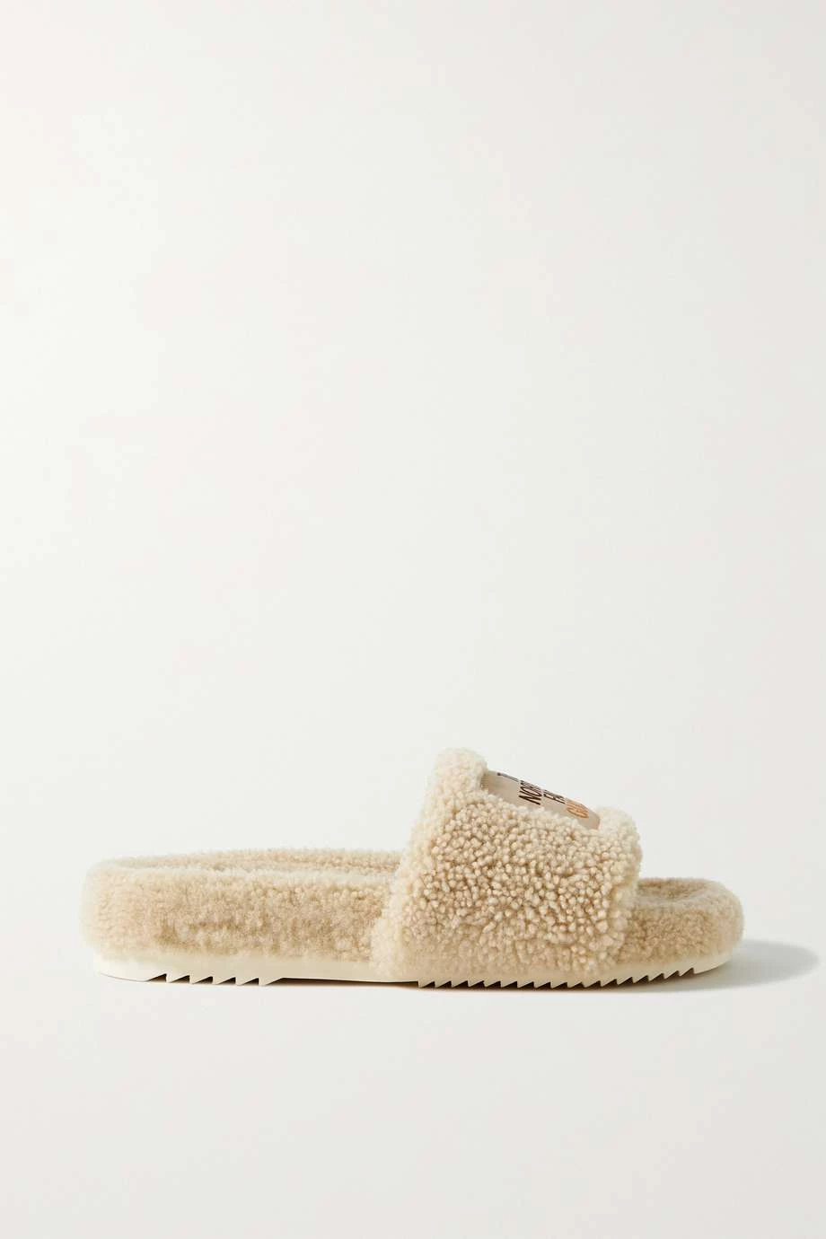 Diese Pantoletten stammen aus der Kollaboration von Gucci und The North Face, was sich auch an der Applikation mit den Logos beider Marken widerspiegelt. Das Paar wurde in Italien aus weichem Shearling gefertigt und mit einer Gummisohle gestaltet, weshalb es auch außer Haus getragen werden kann.
