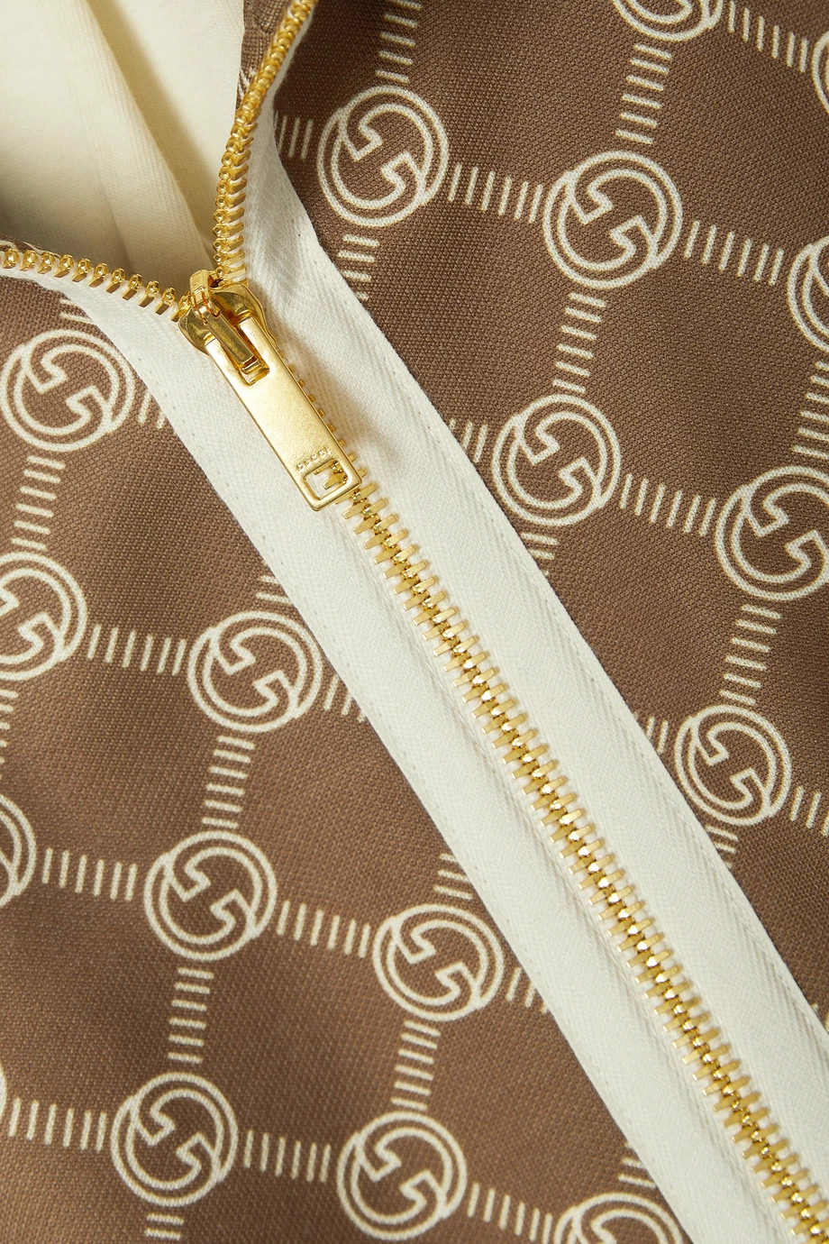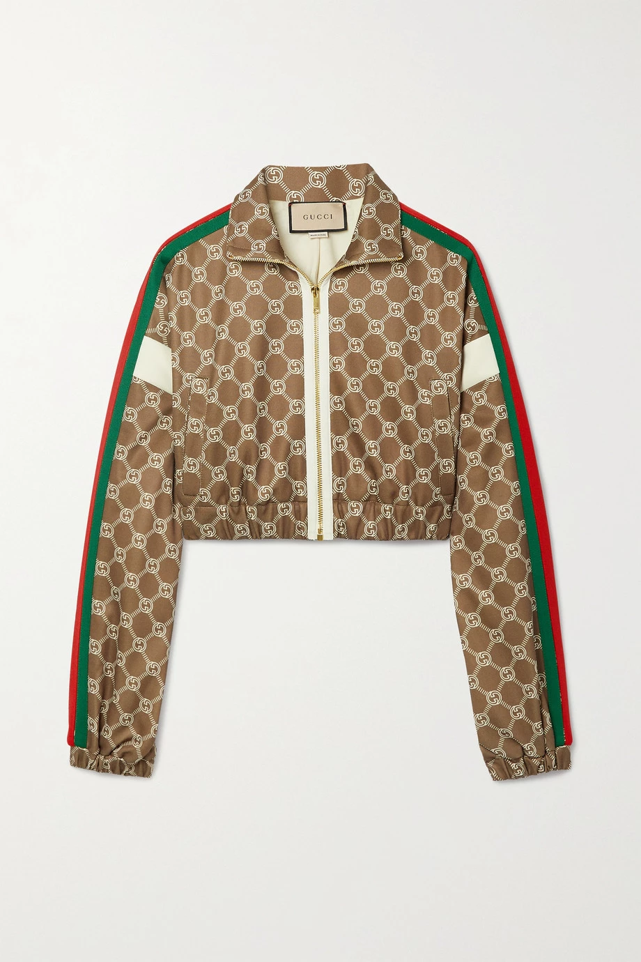GUCCI Verkürzte Trainingsjacke Aus Bedrucktem Technischem Jersey Mit Webstreifen ,Braun
