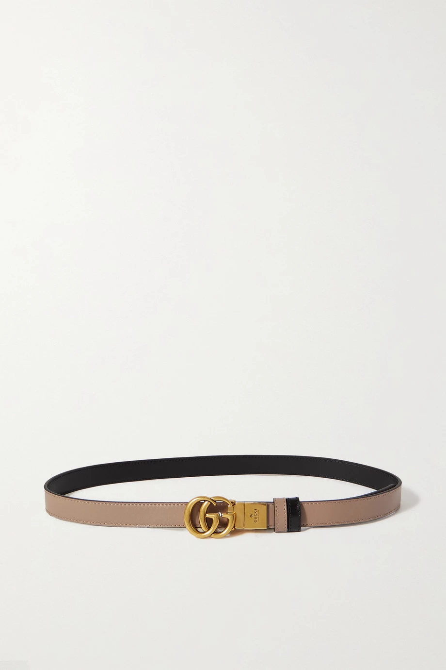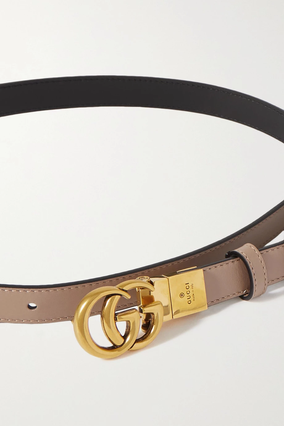 Je nach Outfit können Sie diesen wendbaren Gürtel von Gucci entweder auf der schwarzen oder der altrosafarbenen Seite tragen. Er wurde aus geschmeidigem Leder gefertigt und mit dem „GG“-Logodetail verziert.