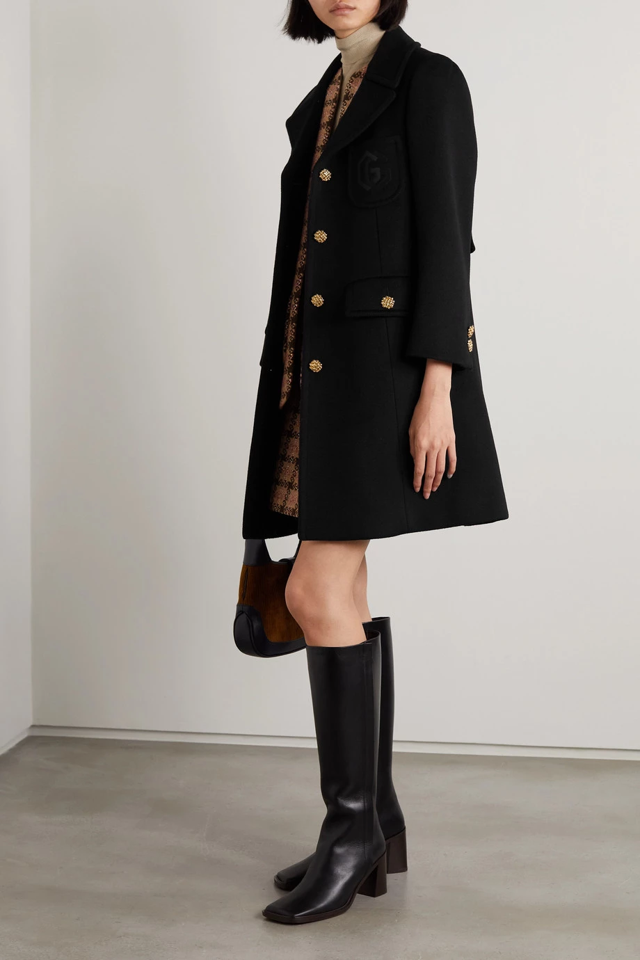 Die Kollektionen von Alessandro Michele für Gucci sind reich an Klassikern wie diesem eleganten schwarzen Mantel, an dem Sie lange Freude haben werden. Der warme Einreiher aus schwerer Wolle ist mit dem „GG“-Emblem bestickt und wurde mit goldglänzenden Knöpfen im Vintage-Stil gestaltet.